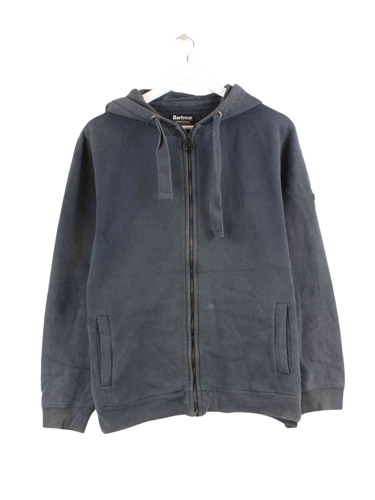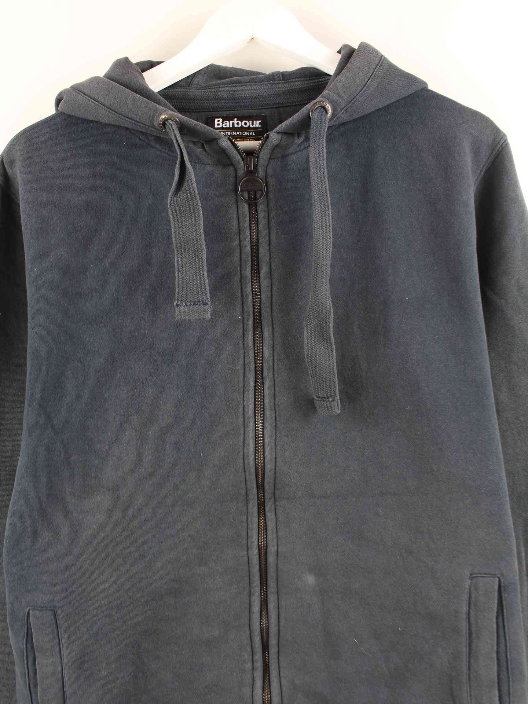 Gray hoodie with zip from the label Barbour in size M. It is made of a cotton blend and is in good condition.