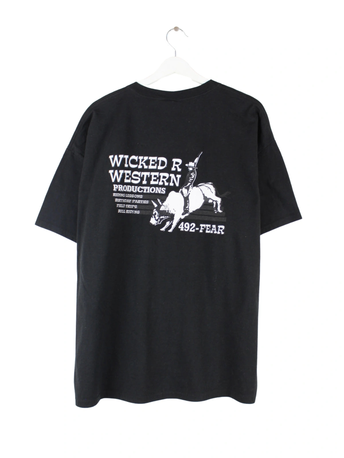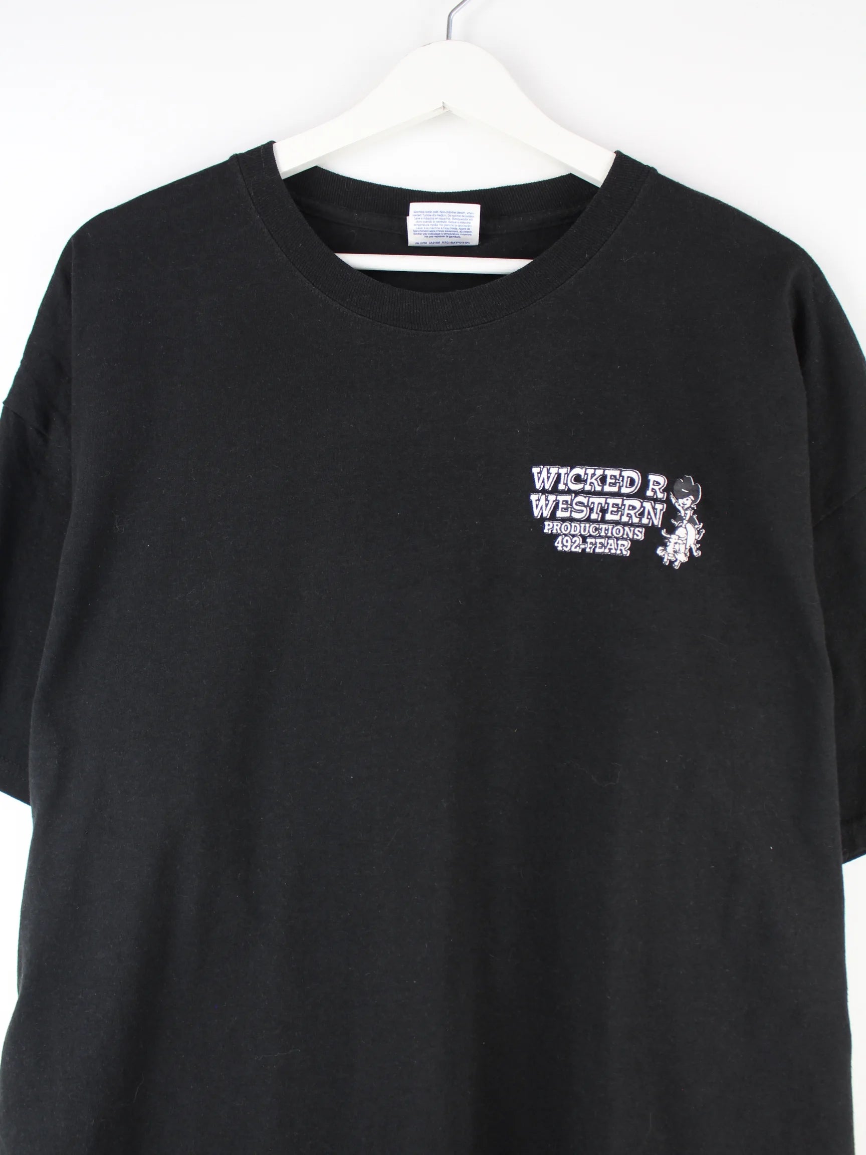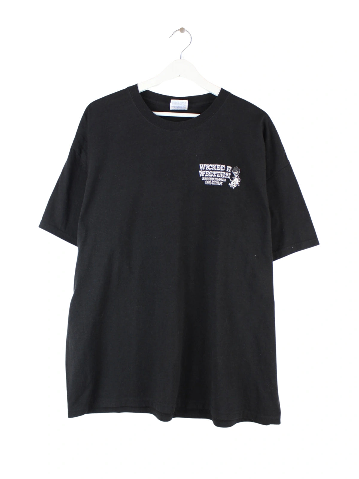 Schwarzes T-Shirt des Labels Hanes in Größe XL. Es ist aus Baumwolle hergestellt und in sehr gutem Zustand in Stock. Mit tollem Western Print.