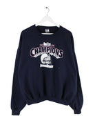Blauer Sweater der Marke Jerzees in Größe XL. Er ist aus einer Baumwollmischung angefertigt und in sehr gutem Zustand zu haben. Mit tollem Football Print.