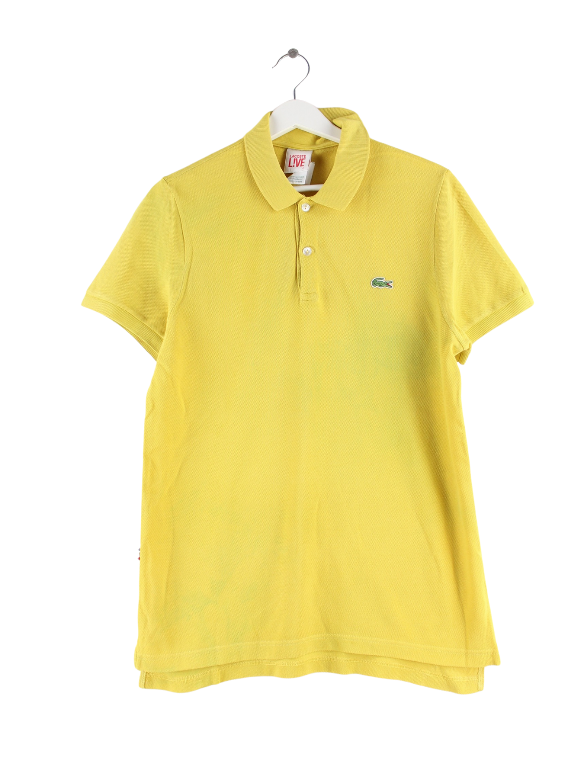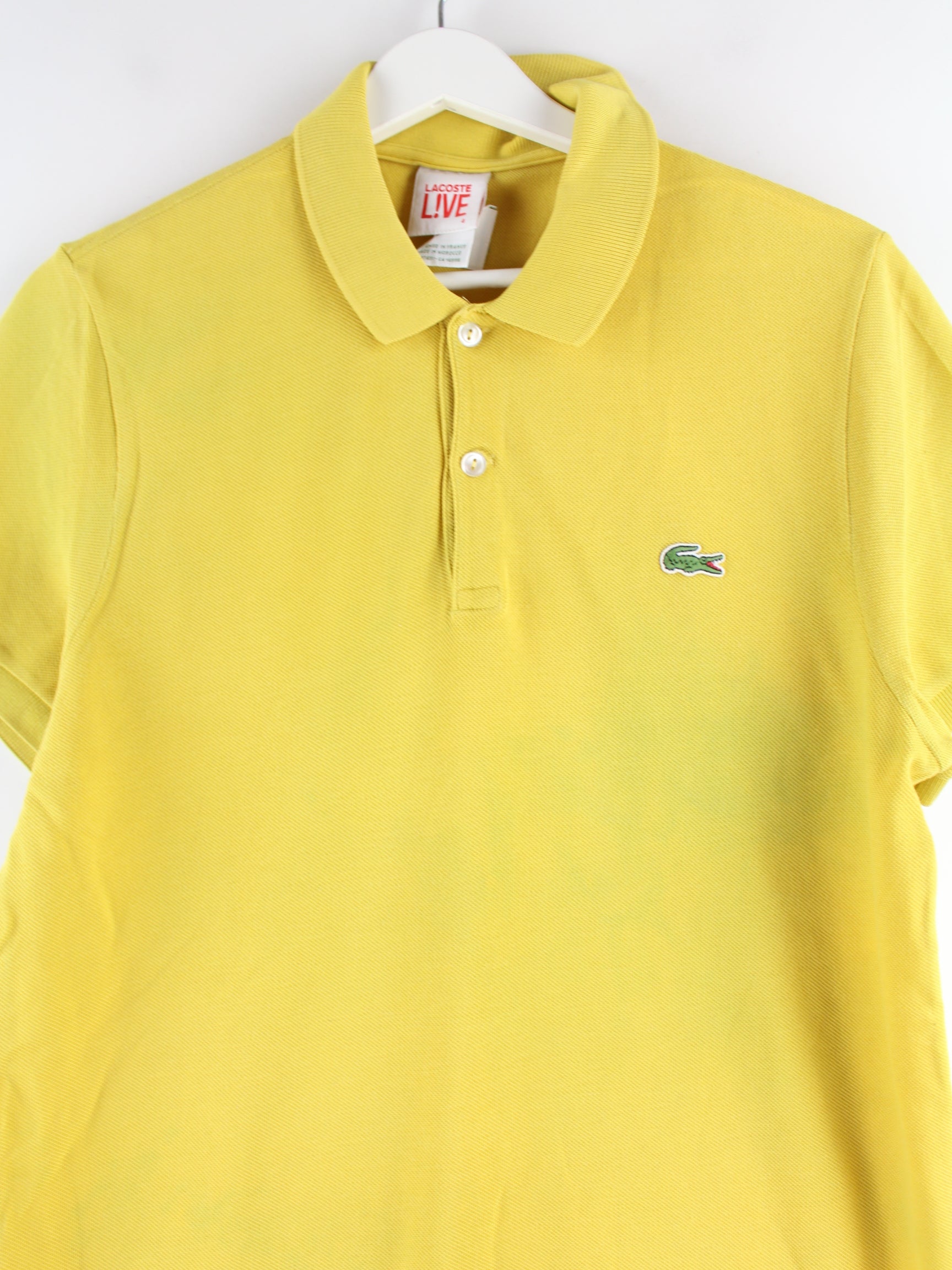 Yellow polo shirt from Lacoste in size S. It is made of cotton. We would describe the condition as 'fine' (see pictures).