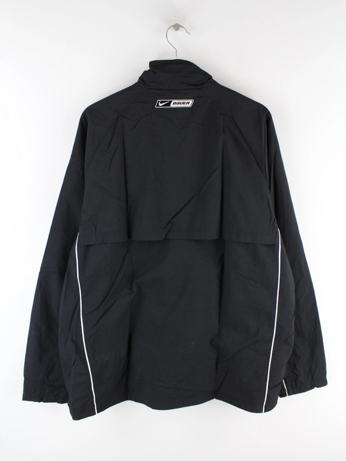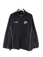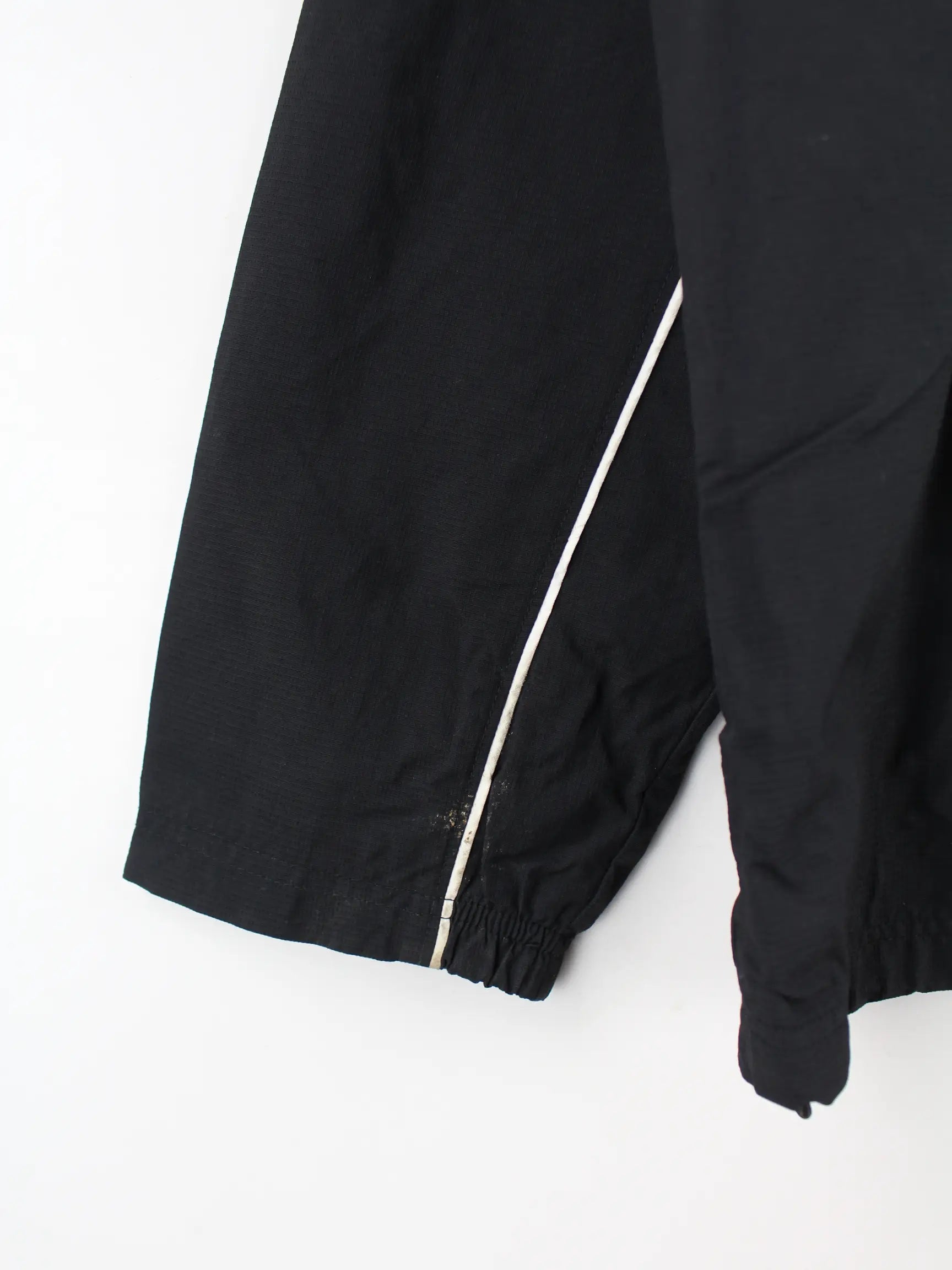 Schwarze Trainingsjacke des Labels Nike in Größe XL. Sie ist aus Synthetik gemacht und in gutem Zustand bei uns vorrätig.