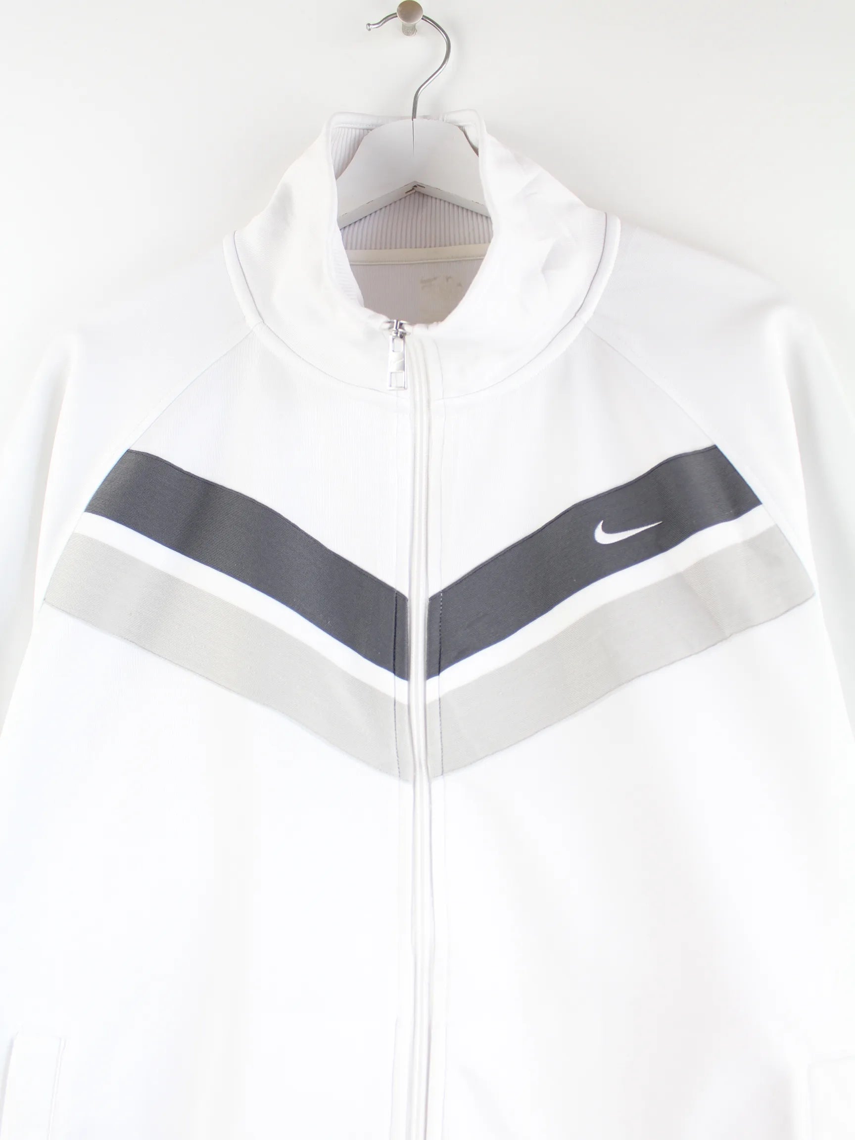 Weiße Trainingsjacke vom Brand Nike in Größe XL. Sie ist aus Synthetik gemacht und in gutem Zustand zu haben.