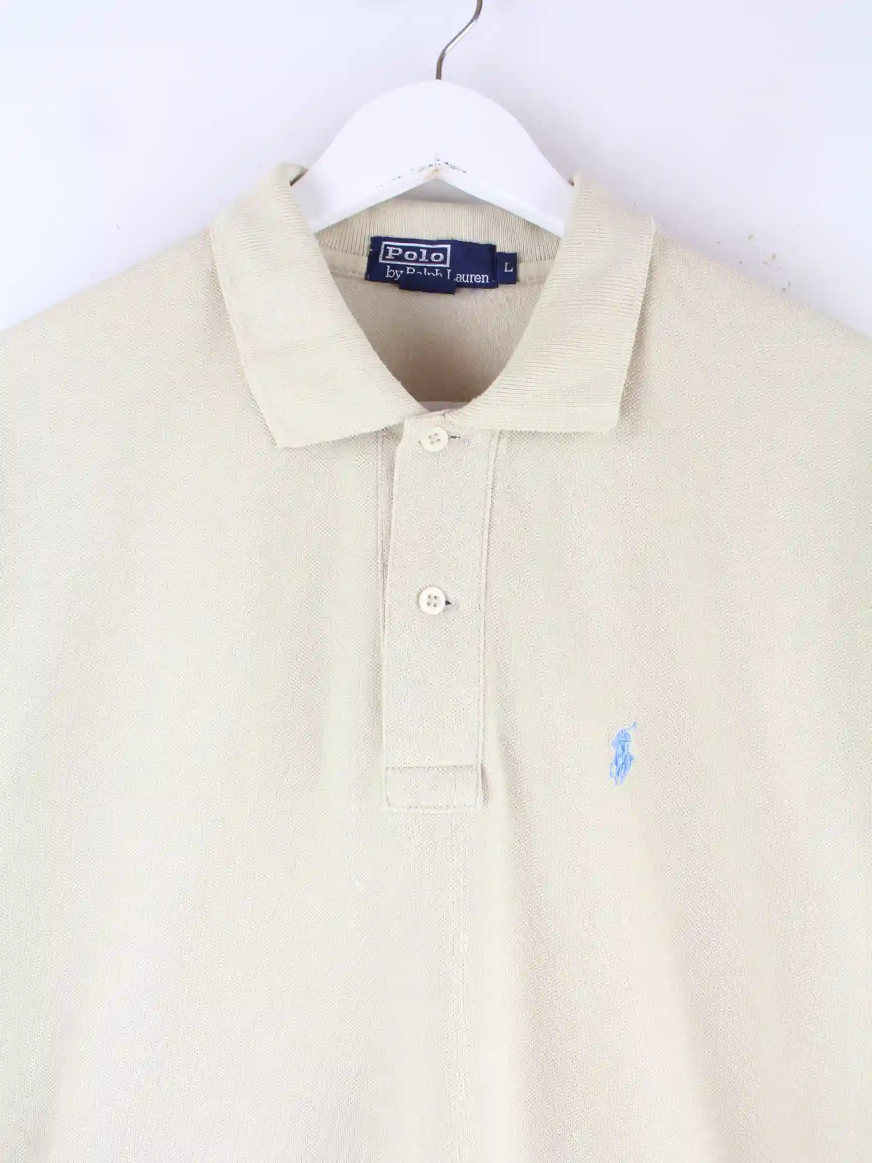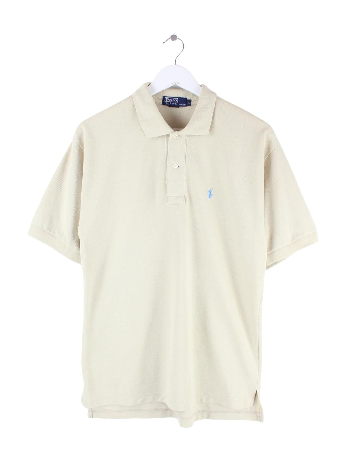 Poloshirt des Labels Ralph Lauren in Größe L. Es ist aus Baumwolle produziert und in Beige lieferbar.