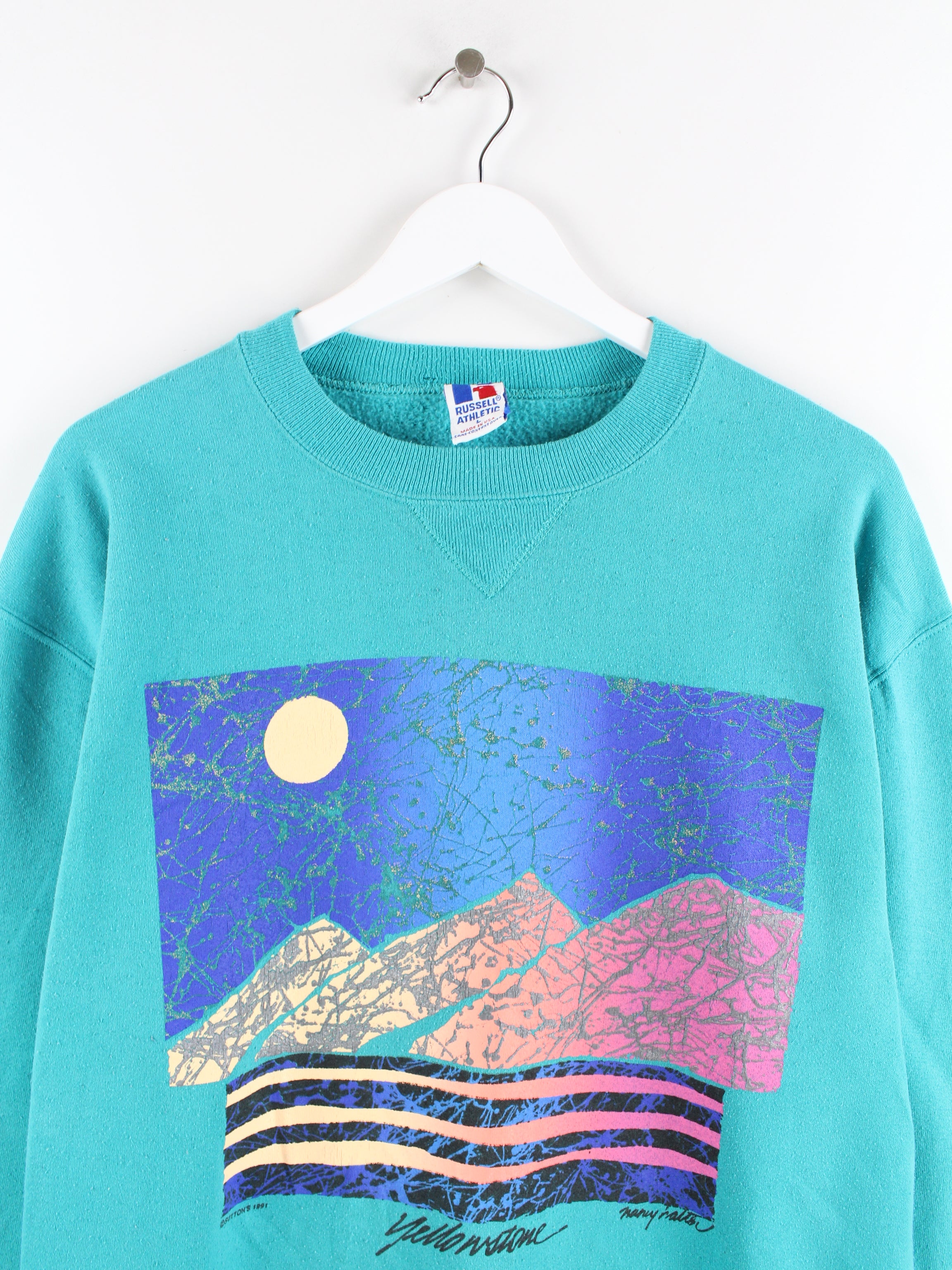 Russell Athletic 90s Print Sweater Turquoise L