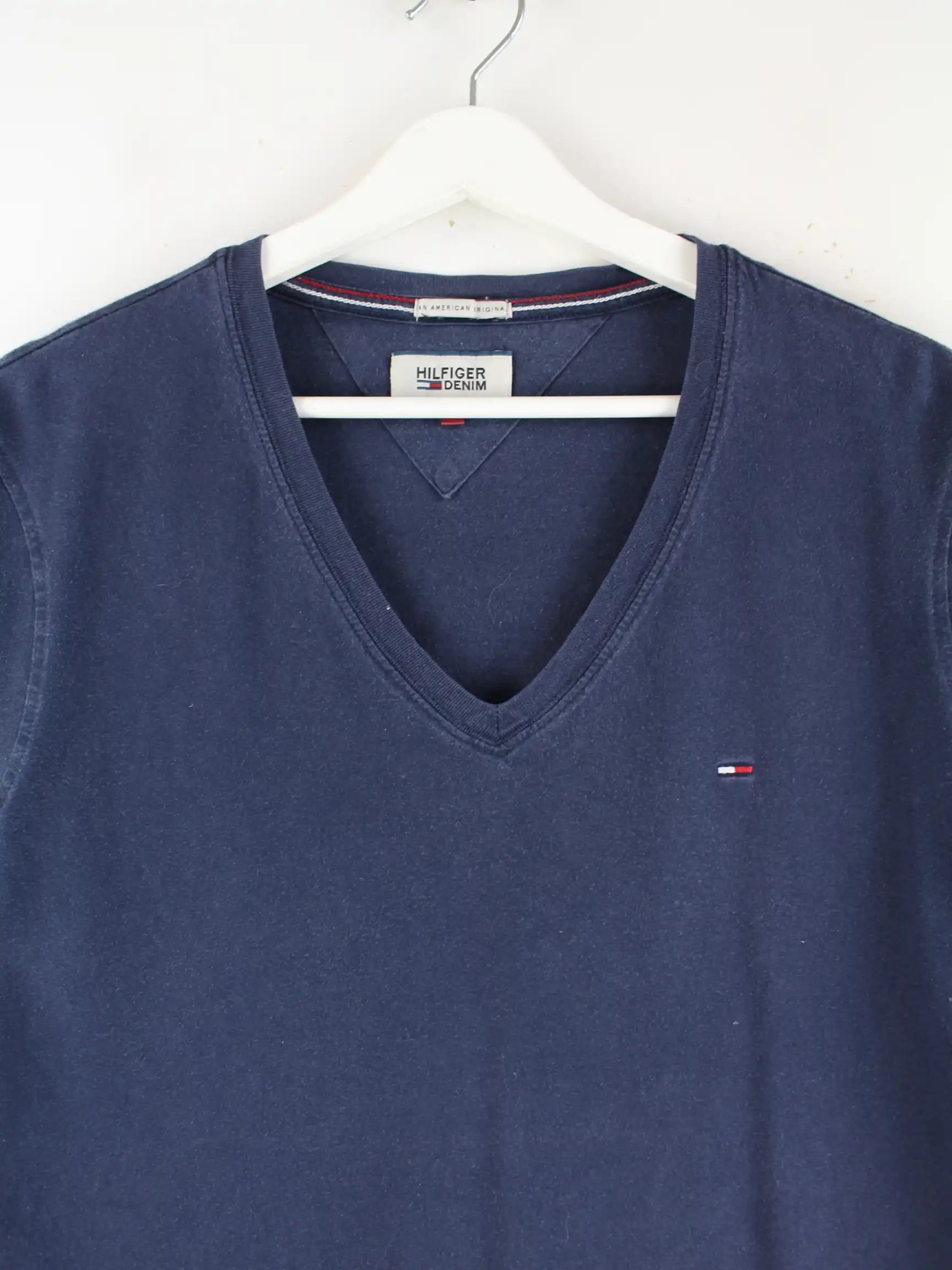 T-Shirt der Brand Tommy Hilfiger in Größe L. Es ist aus Baumwolle produziert und in Blau im Angebot.