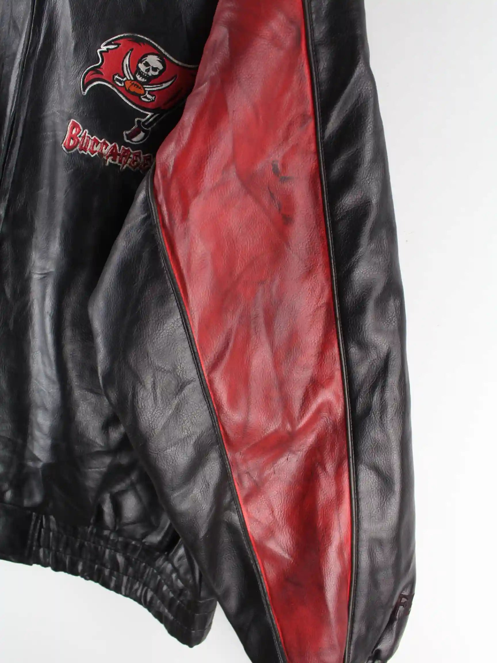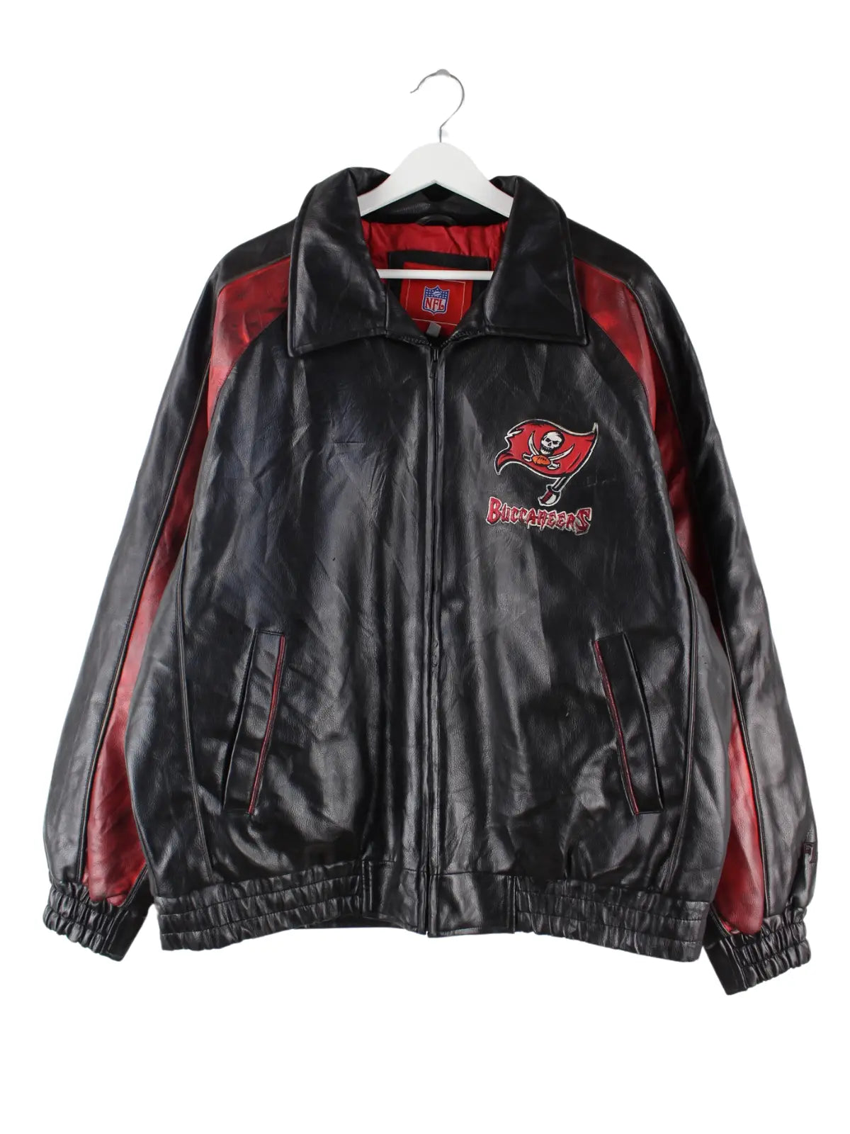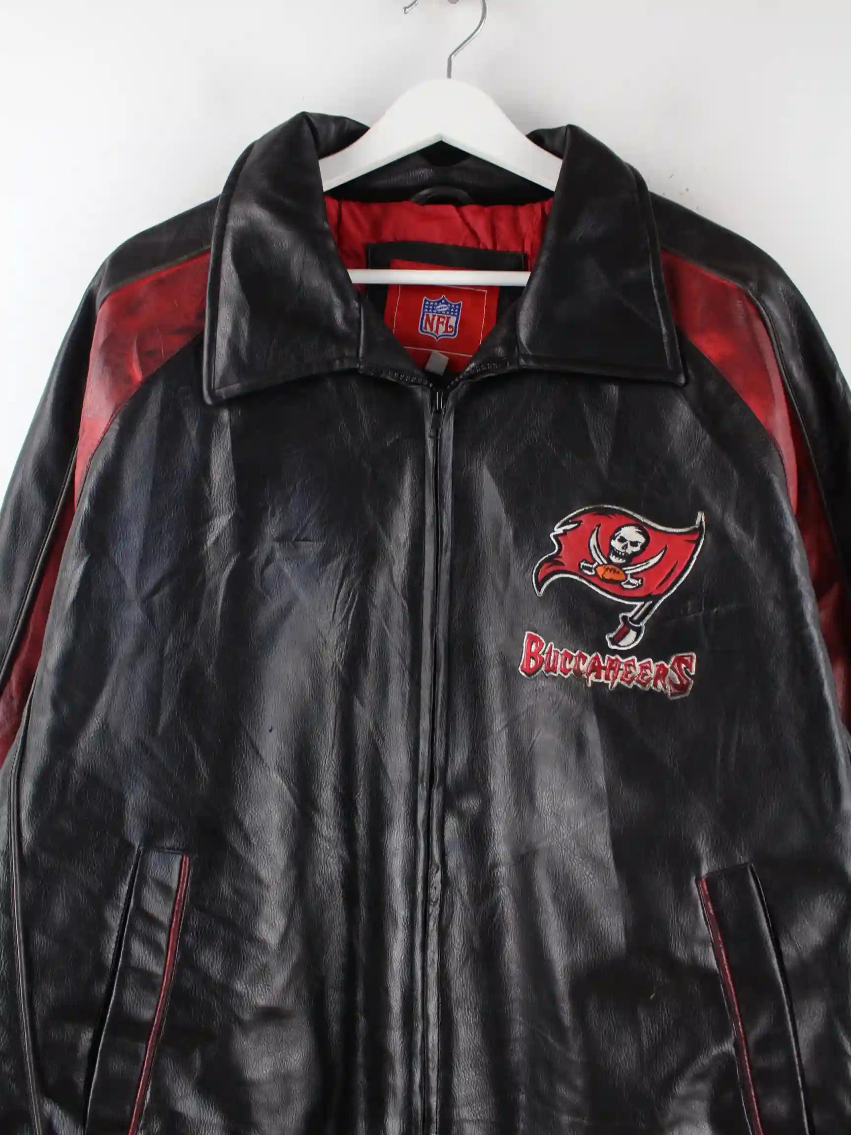 NFL 00s Buccaneers Embroidered Leder College Jacke Schwarz L