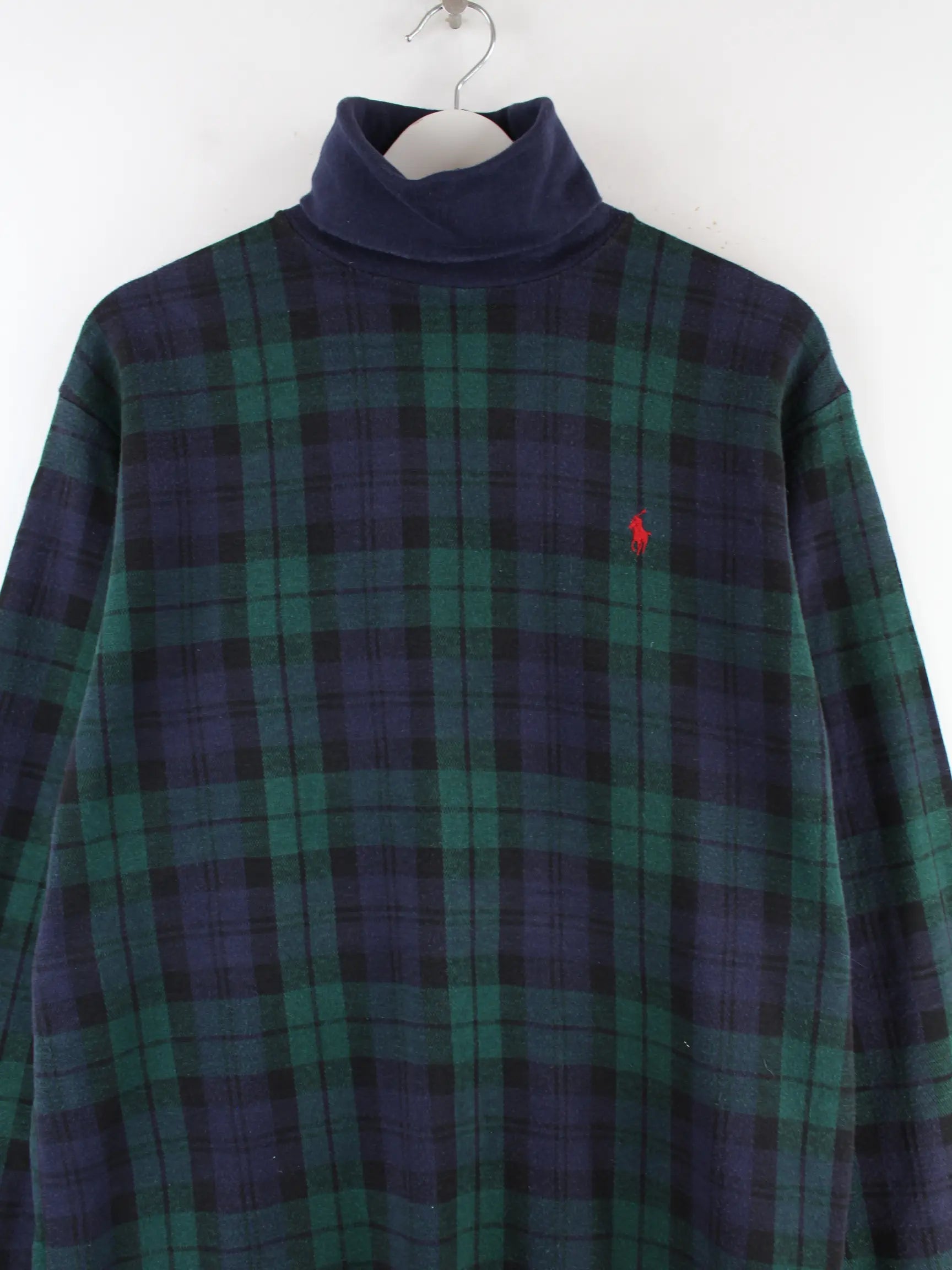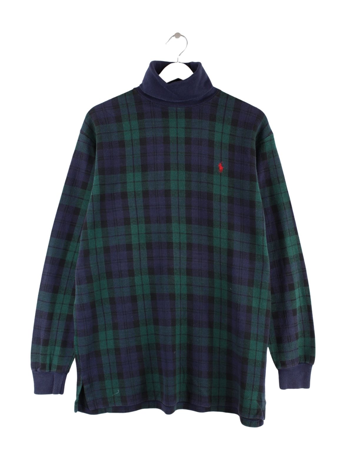 Ralph Lauren 90s Vintage Checked Rollkragen Pullover Blau L