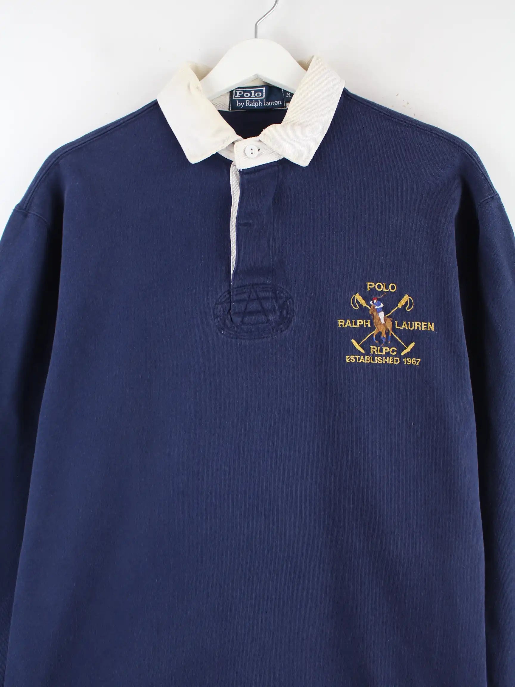 Ralph Lauren 90s Vintage Rugby Langarm Polo Blau M