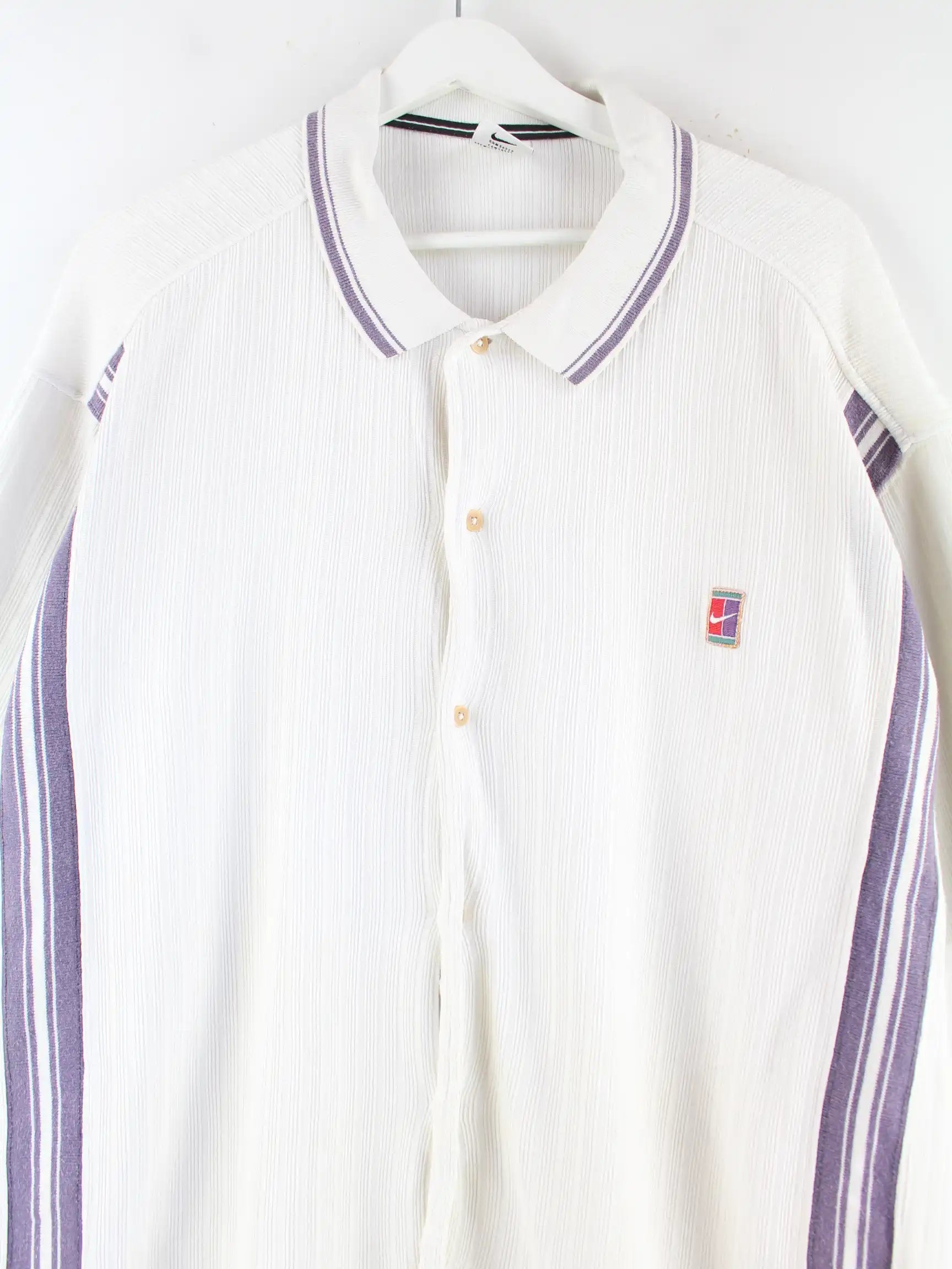 Nike Court 90s Vintage Ribbed Kurzarm Hemd Weiß XL