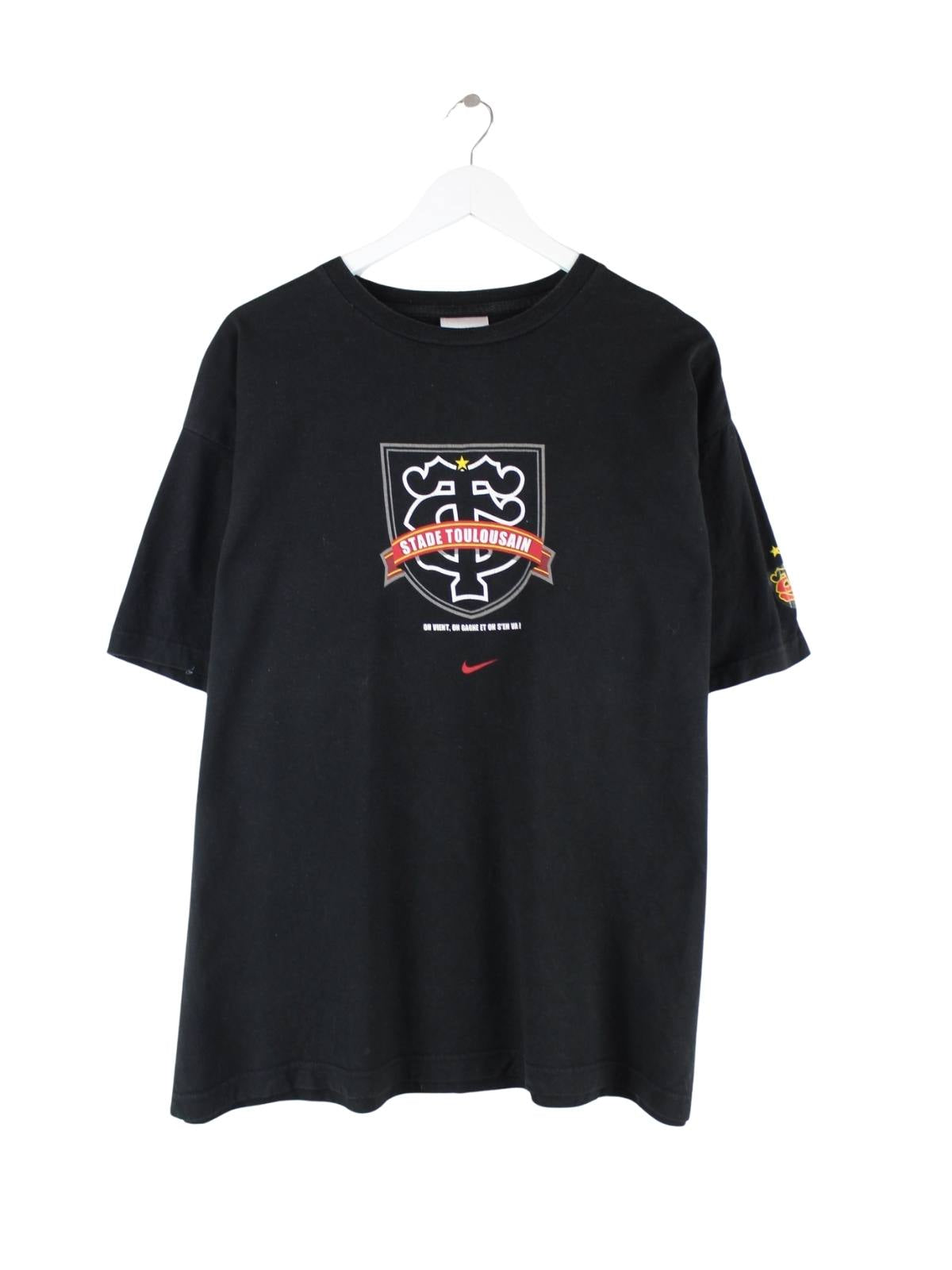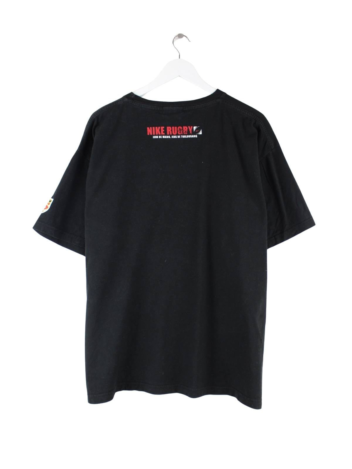 Nike 00s Stade Toulousain Rugby Print T-Shirt Schwarz XL