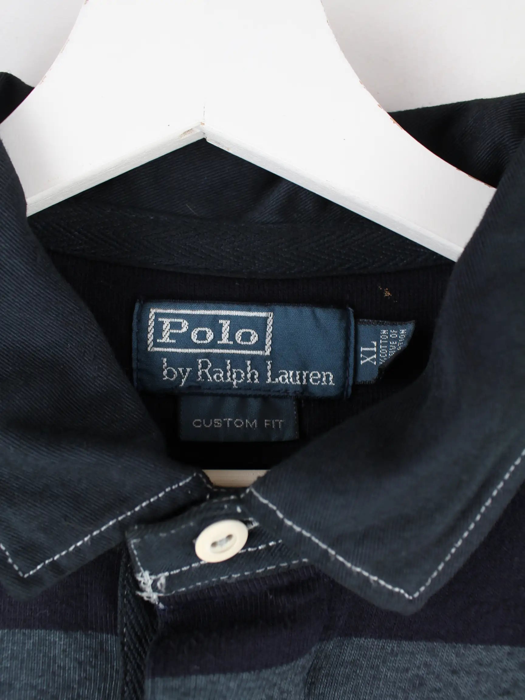 Ralph Lauren 00s Custom Fit Striped Langarm Polo Grau XL