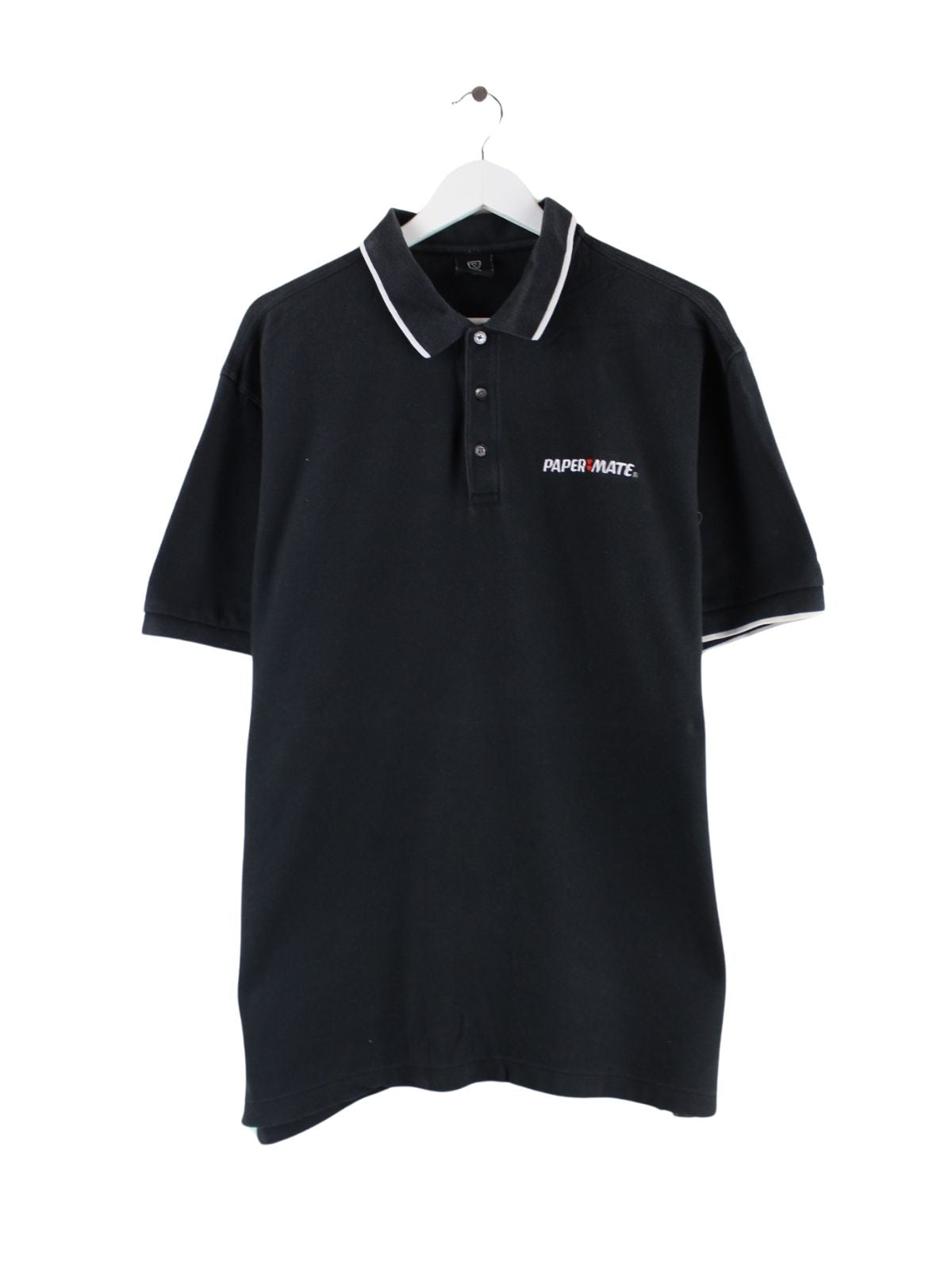 Schwarzes Poloshirt aus dem Hause Nike in Größe XL. Es ist aus Baumwolle gemacht und in gutem Zustand vorrätig.