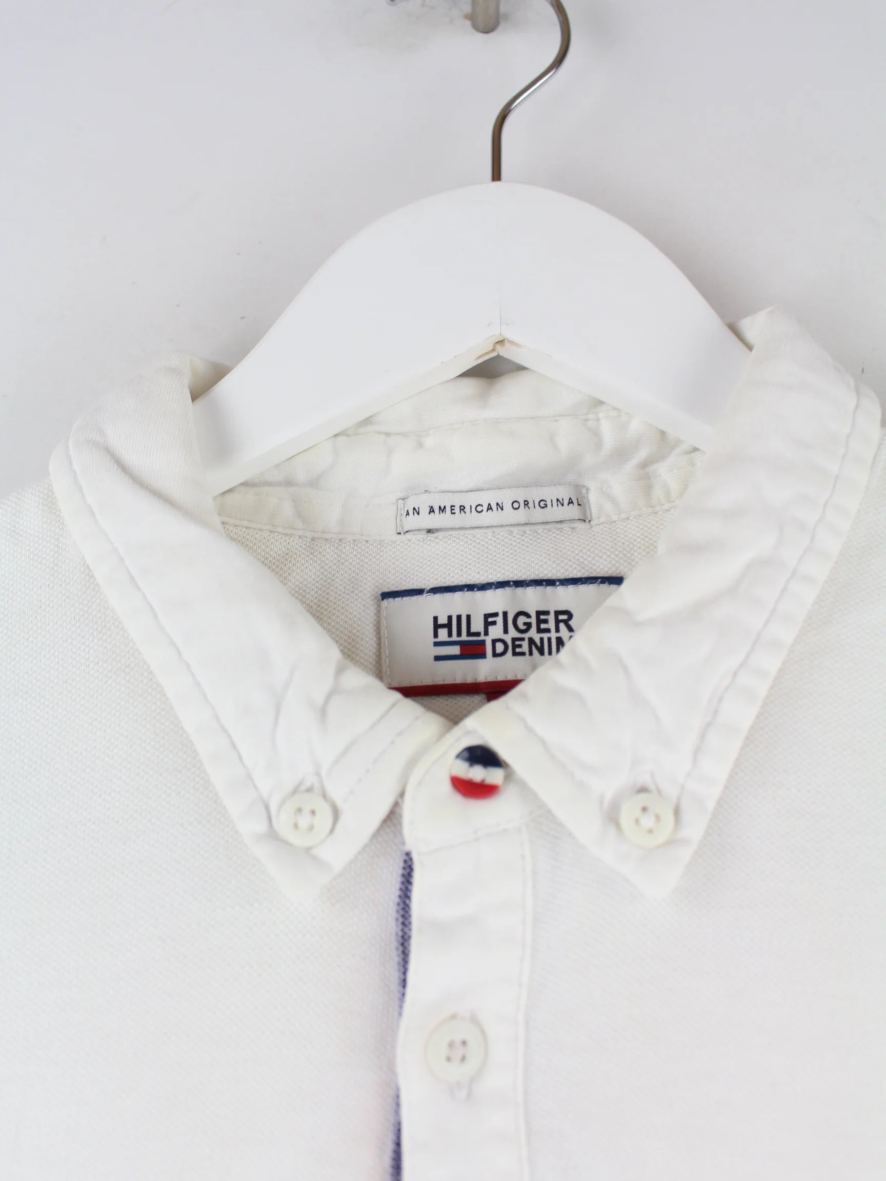 Weißes Poloshirt vom Label Tommy Hilfiger in Größe M. Es ist aus Baumwolle . Den Zustand würden wir als 'In Ordnung' bezeichnen (vergl. Bilder).
