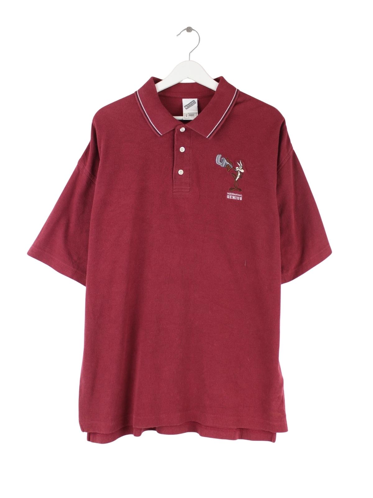 Warner Bros 00s Embroidered Polo Rot L