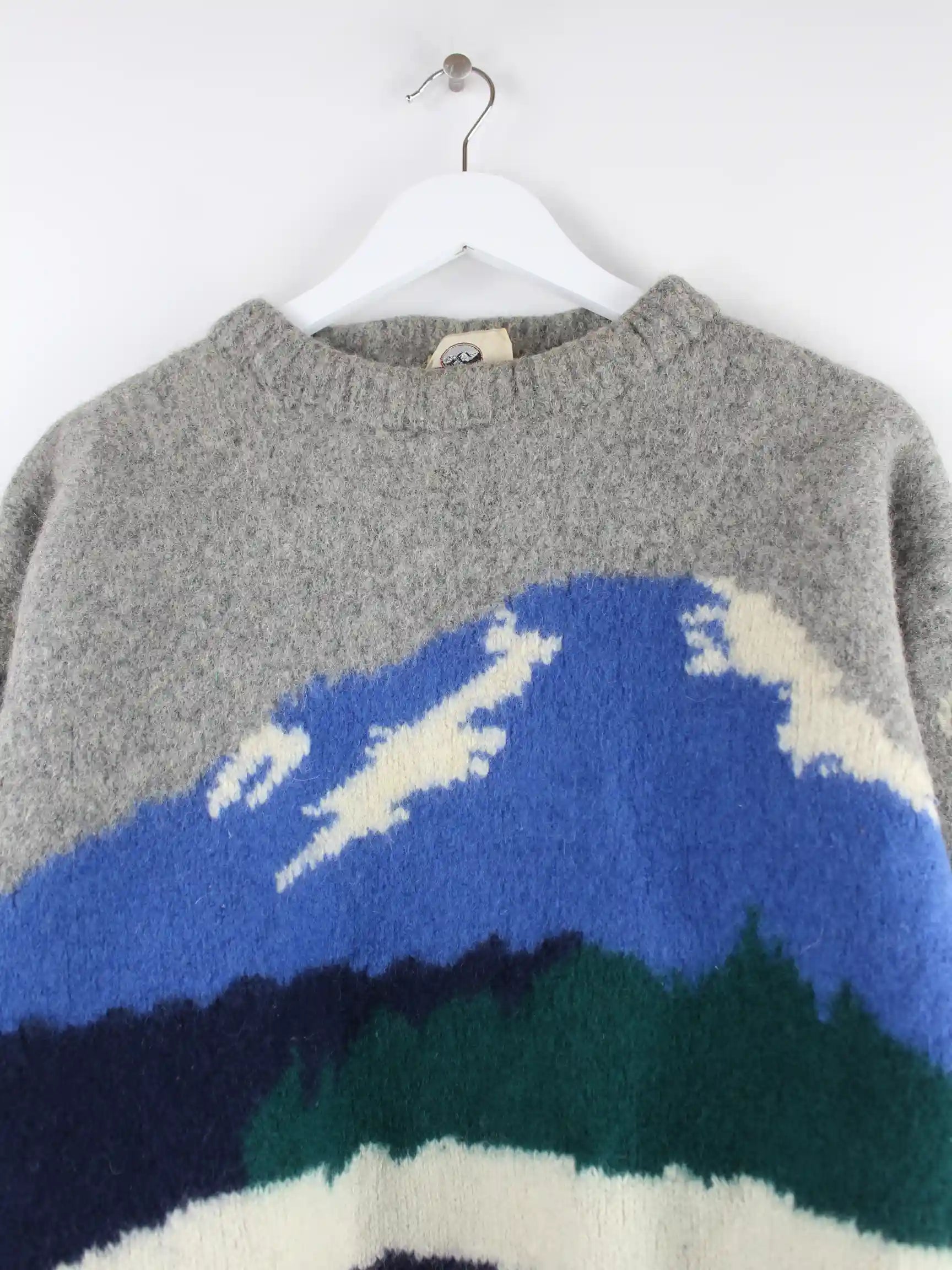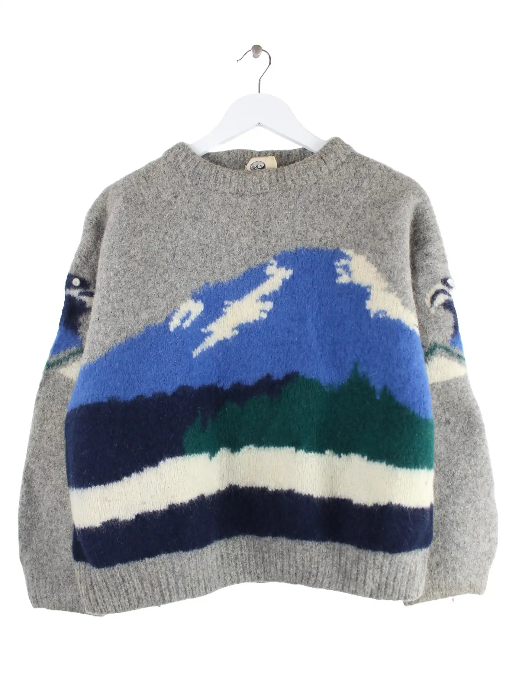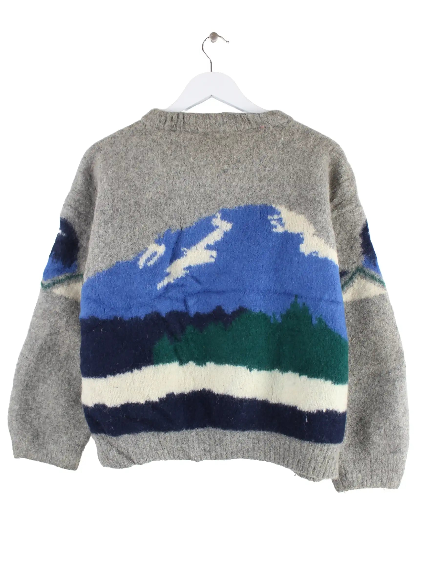 Vintage Damen 80s Woll Pullover Grau XS