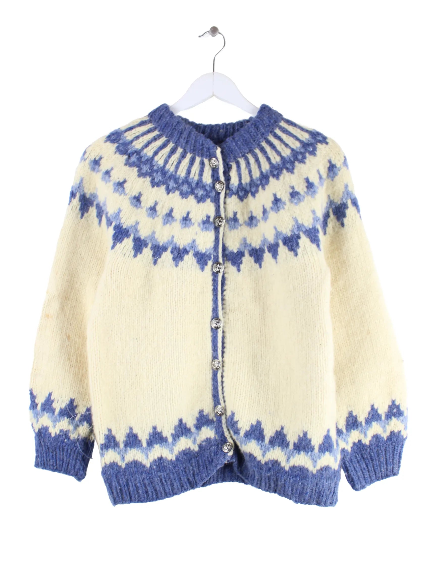 Vintage Damen 90s Woll Strickjacke Beige S