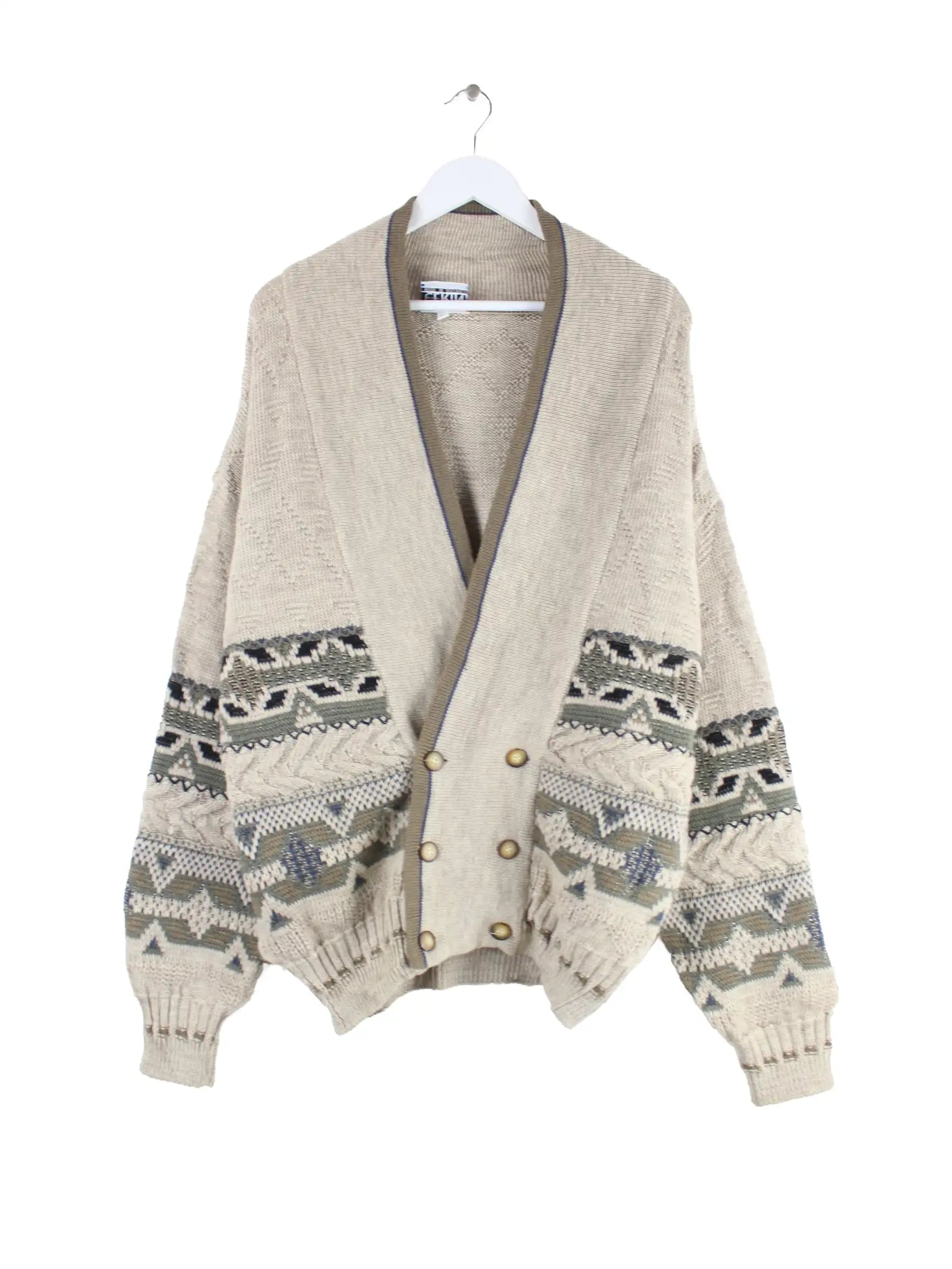 Vintage Damen 90s Woll Strickjacke Beige M