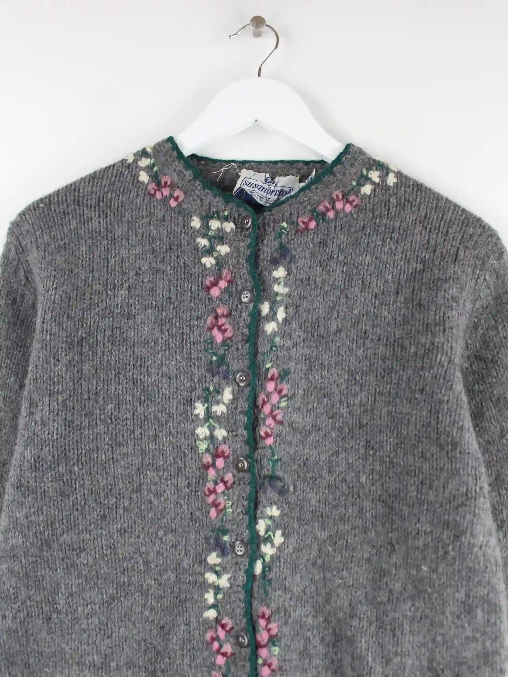 Vintage Damen 90s Woll Strickjacke Grau M