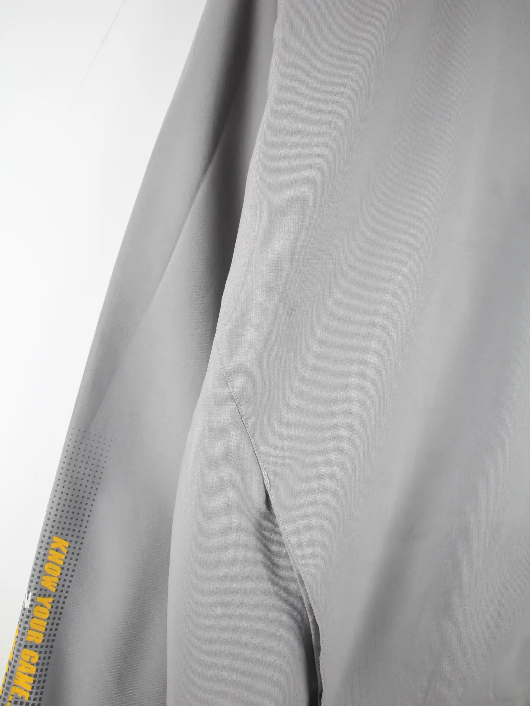 Graue Trainingsjacke der Brand Reebok in Größe L. Sie ist aus Synthetik und in gutem Zustand bei uns zu bekommen.