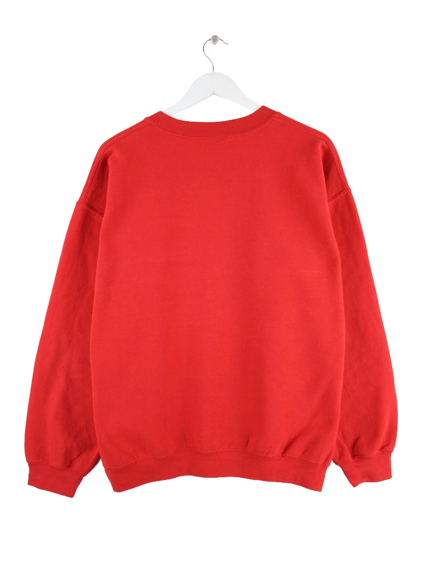 Sweater des Labels Gildan in Größe L. Er ist aus einer Baumwollmischung angefertigt und in Rot auf Lager. Mit chiquem State Print.