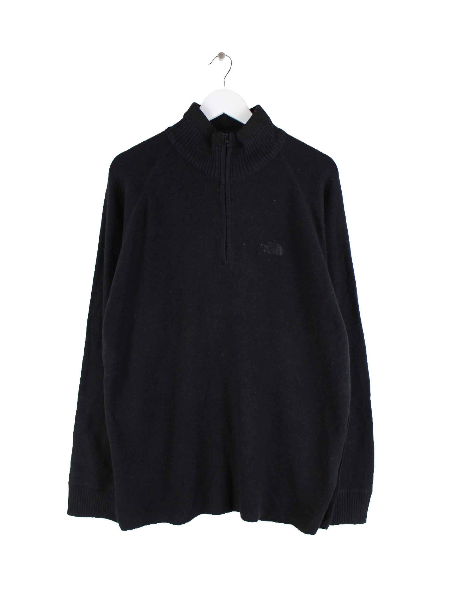 Schwarzer Pullover mit halbem Reißverschluß der Brand The North Face in Größe XL. Er ist aus einer Baumwollmischung hergestellt und in gutem Zustand auf Lager.