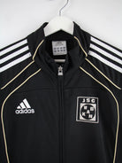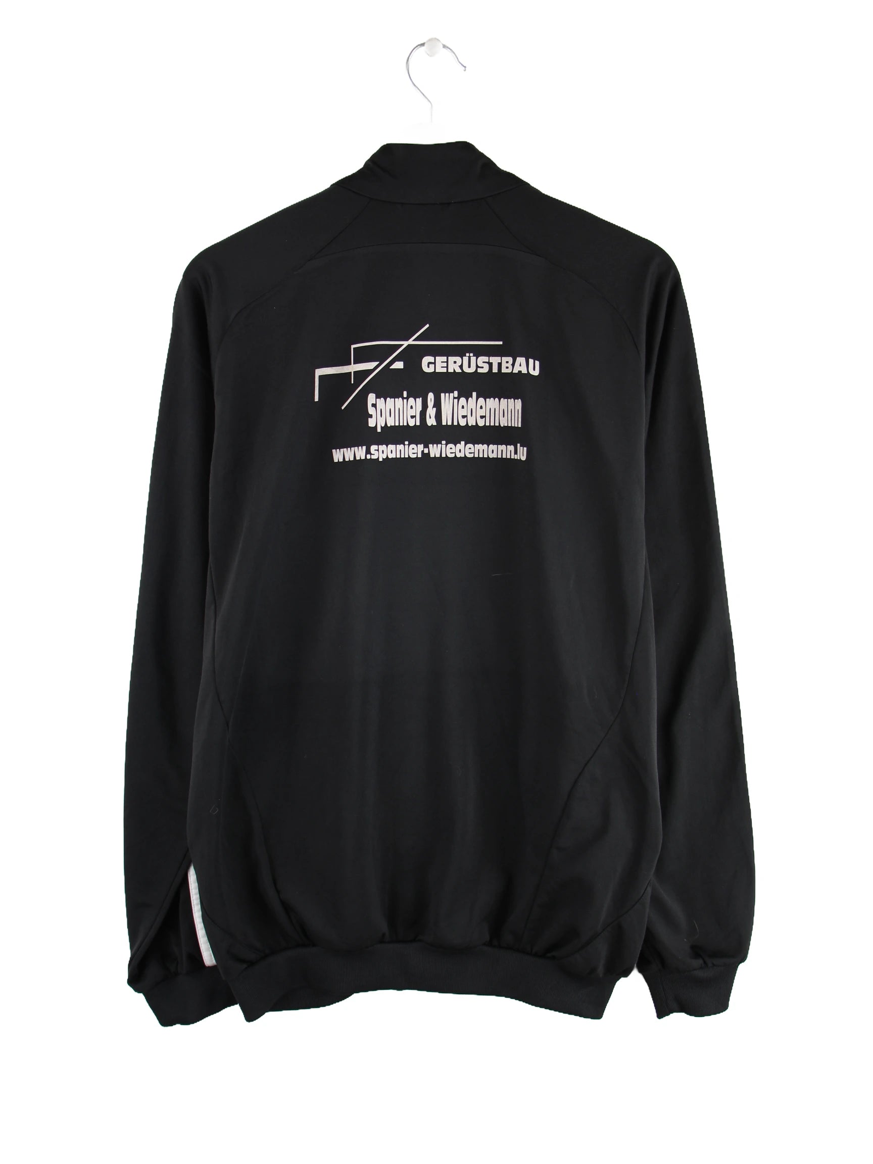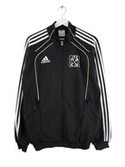 Schwarze Trainingsjacke aus dem Hause Adidas in Größe L. Sie ist aus Synthetik und in sehr gutem Zustand zu haben. Mit schönem 00s Print.