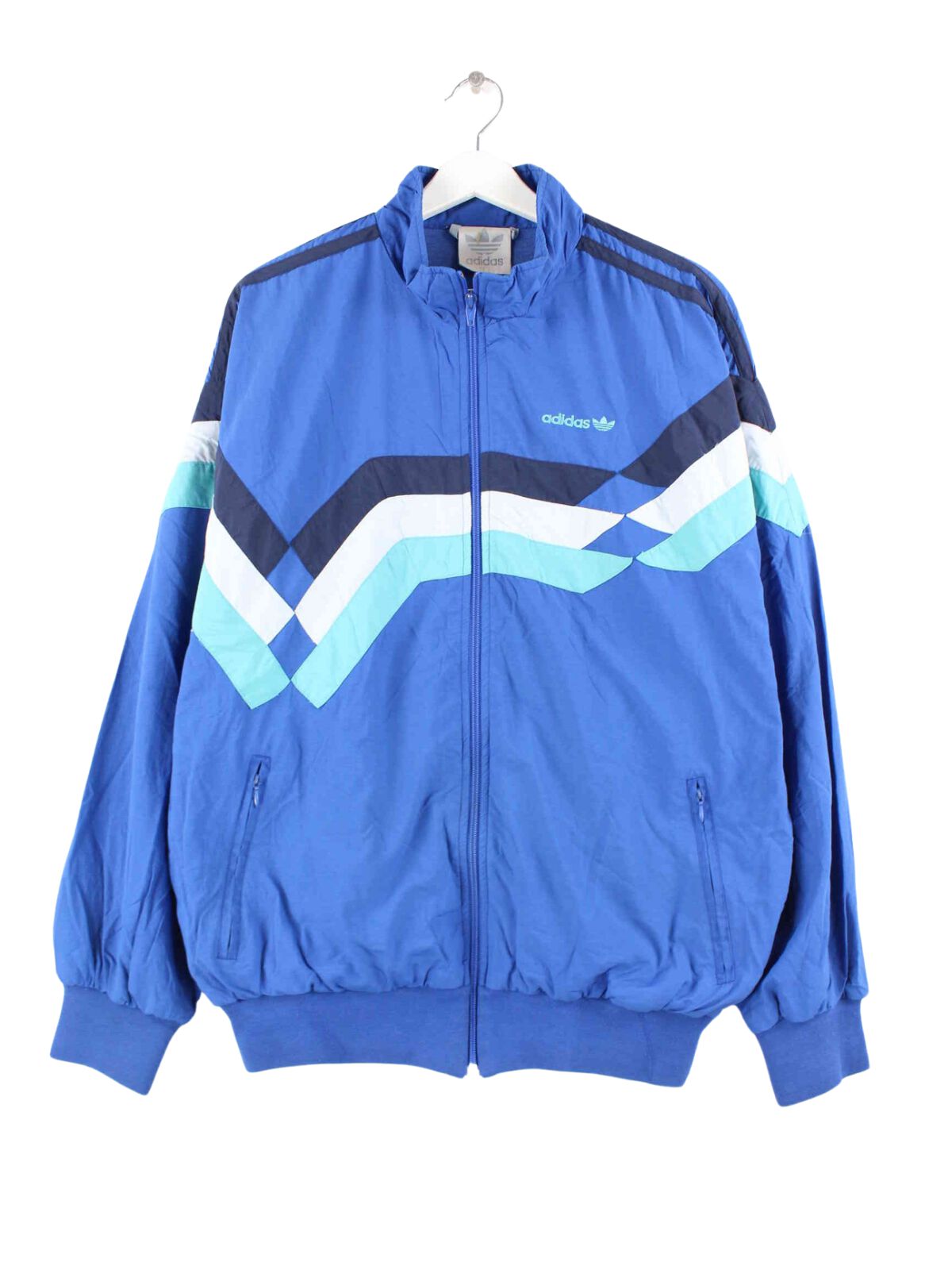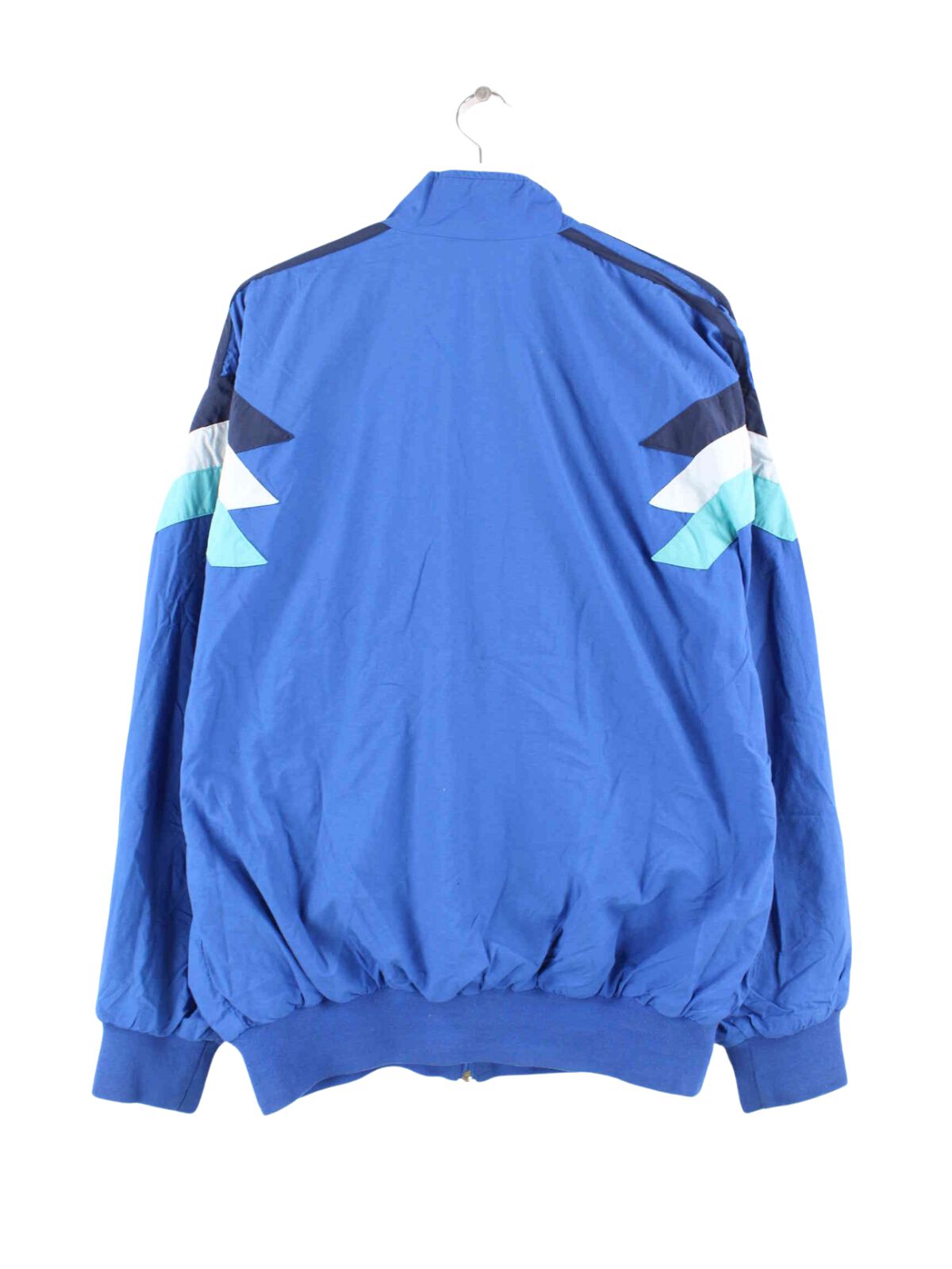 Blue training jacket from the Adidas brand from the 80s in size L. It is made of synthetic material and is available in very good condition.
