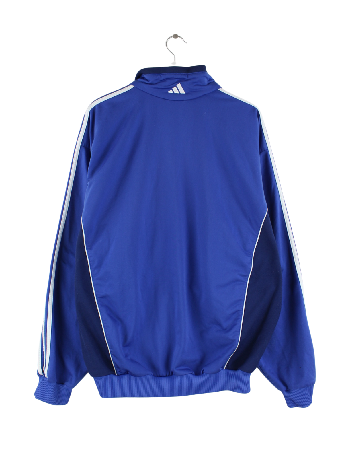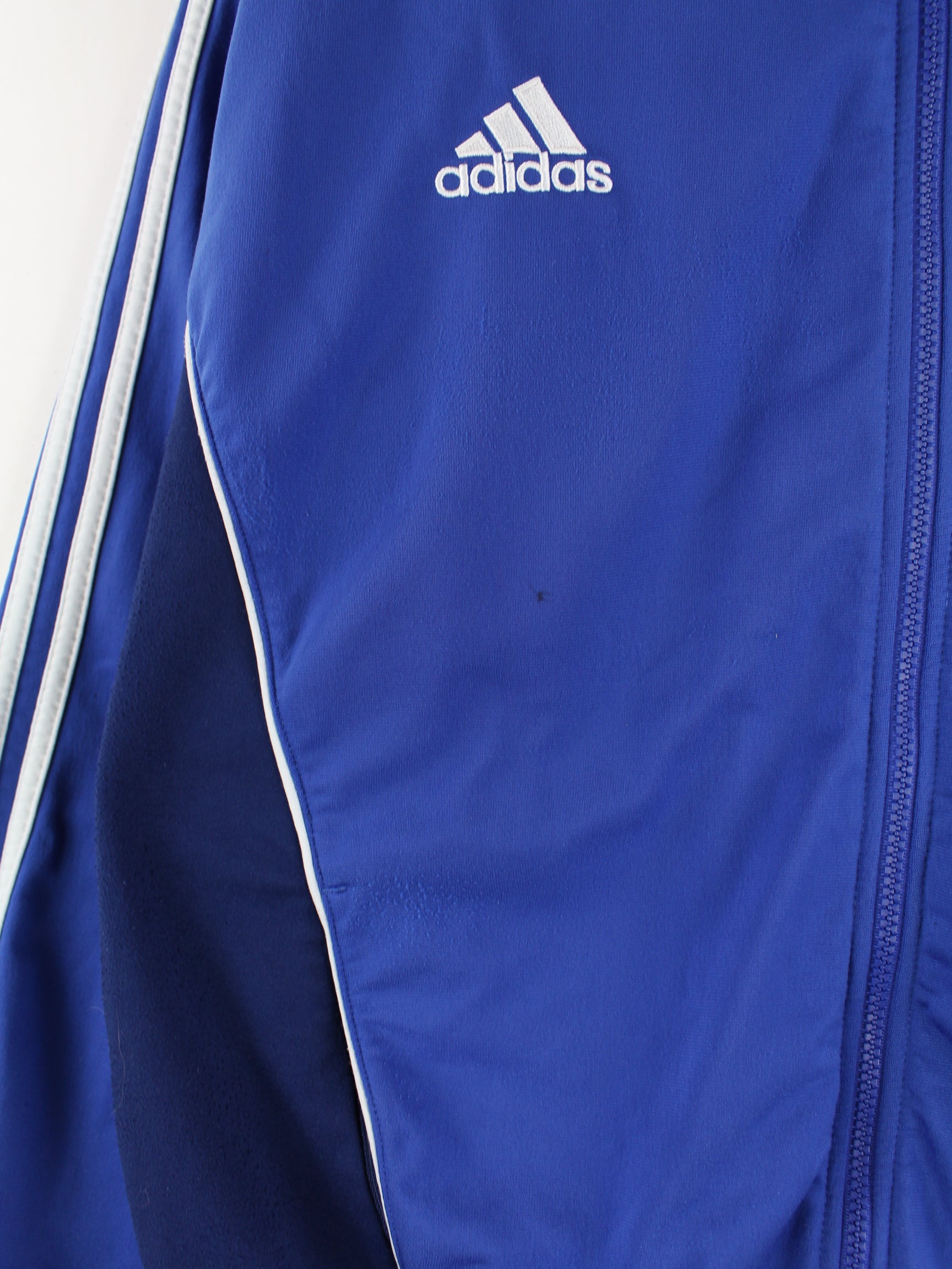 Blaue Trainingsjacke vom Label Adidas aus den 90'ern in Größe XL. Sie ist aus Synthetik angefertigt und in gutem Zustand bei uns vorrätig.