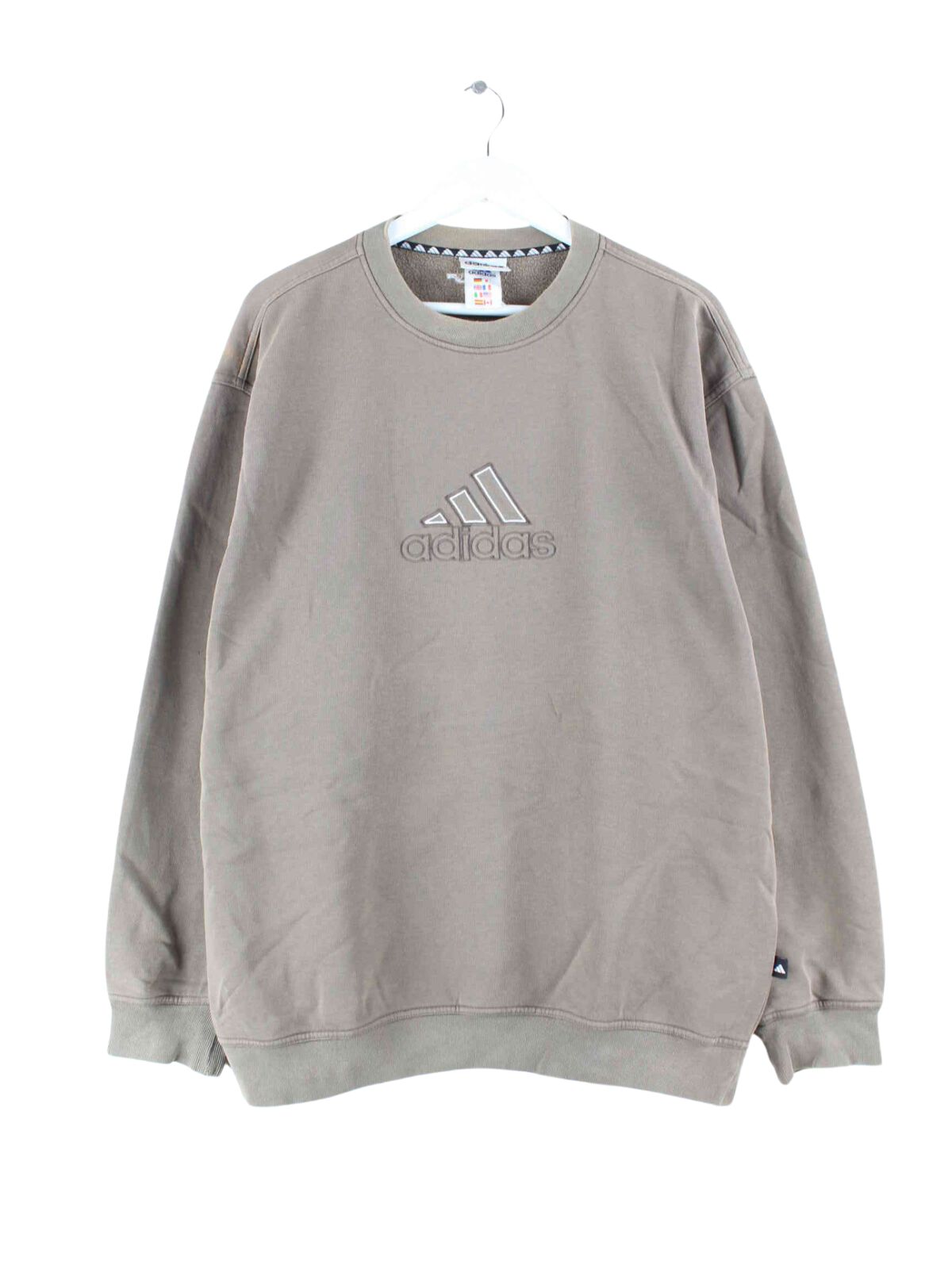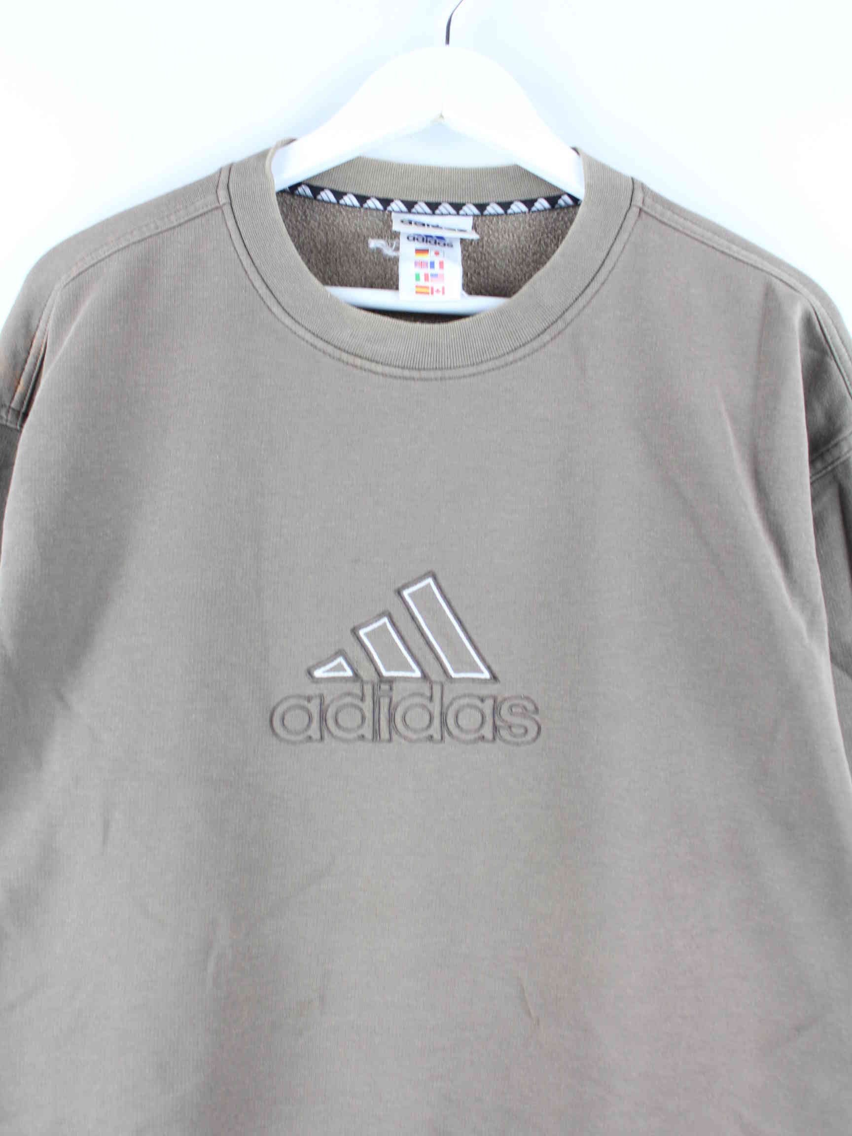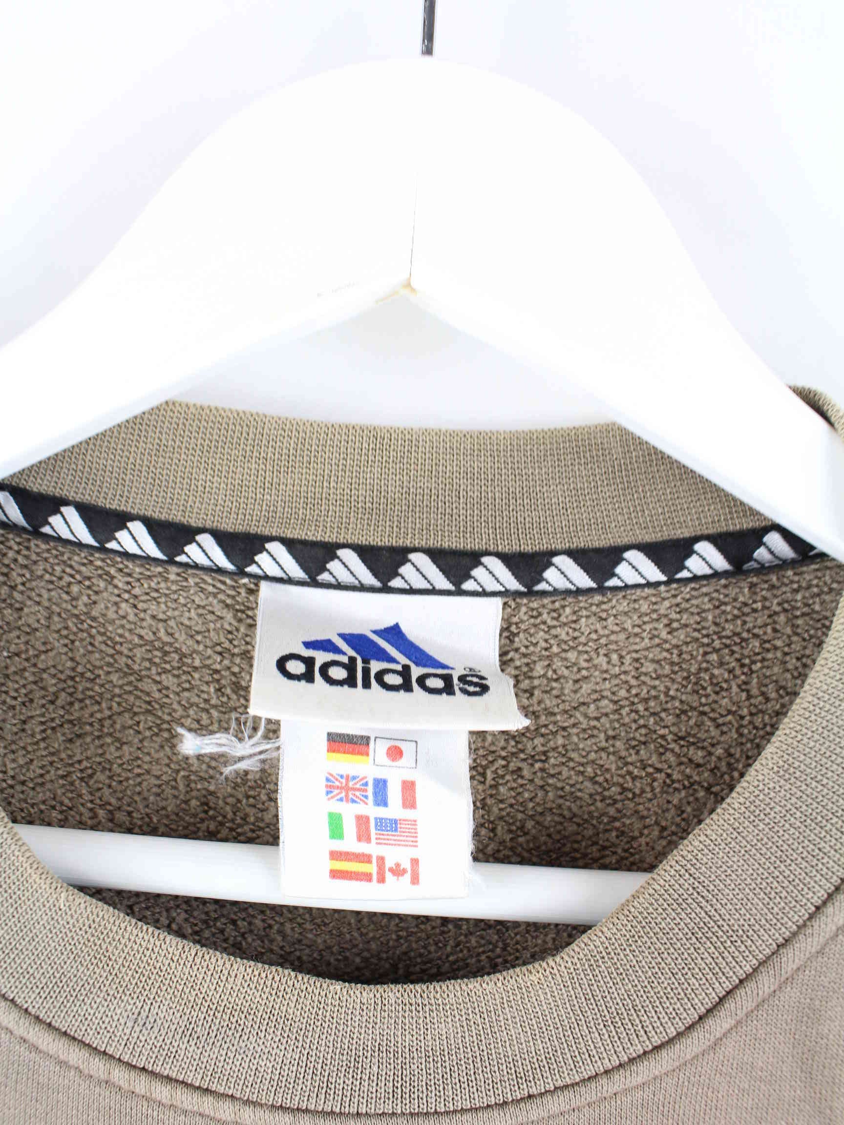 Sweater from Adidas with embroidered logo in size L from the 90s. It is made from a cotton blend and is available from us in brown.