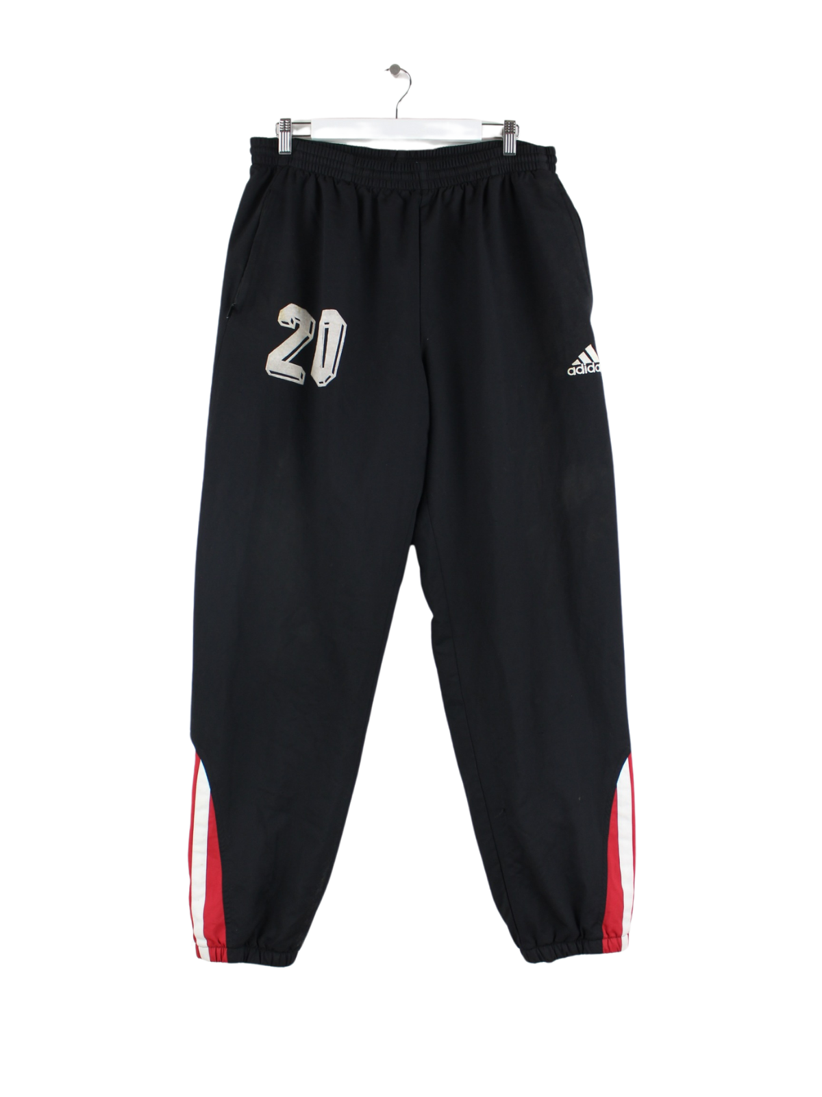 Schwarze Track Pants vom Brand Adidas aus den 90'ern in Größe XL. Sie sind aus Synthetik . Den Zustand würden wir als 'In Ordnung' bezeichnen (vergl. Bilder).