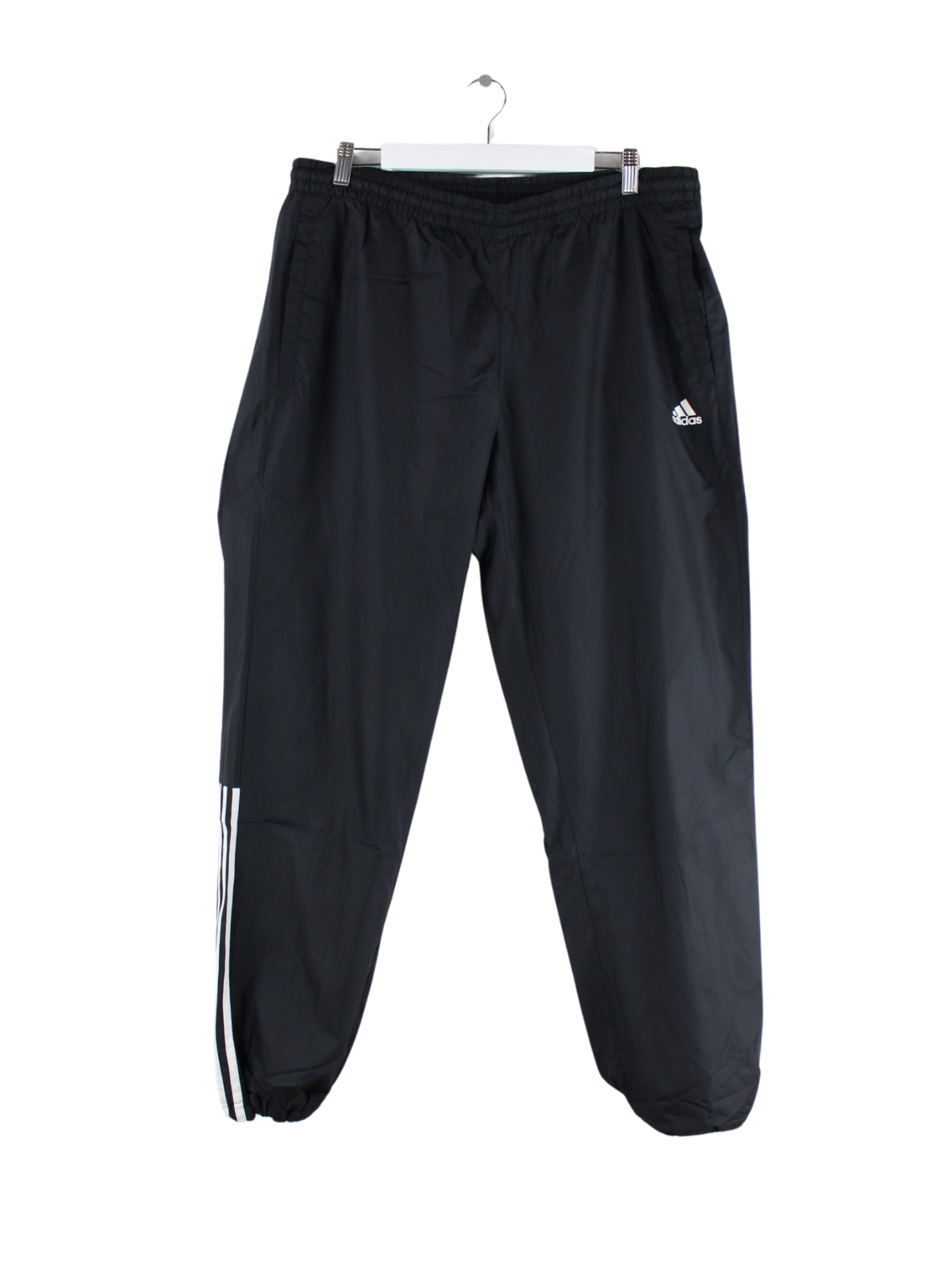 Track Pants vom Label Adidas in Größe L. Sie sind aus Synthetik und in Schwarz im Bestand.