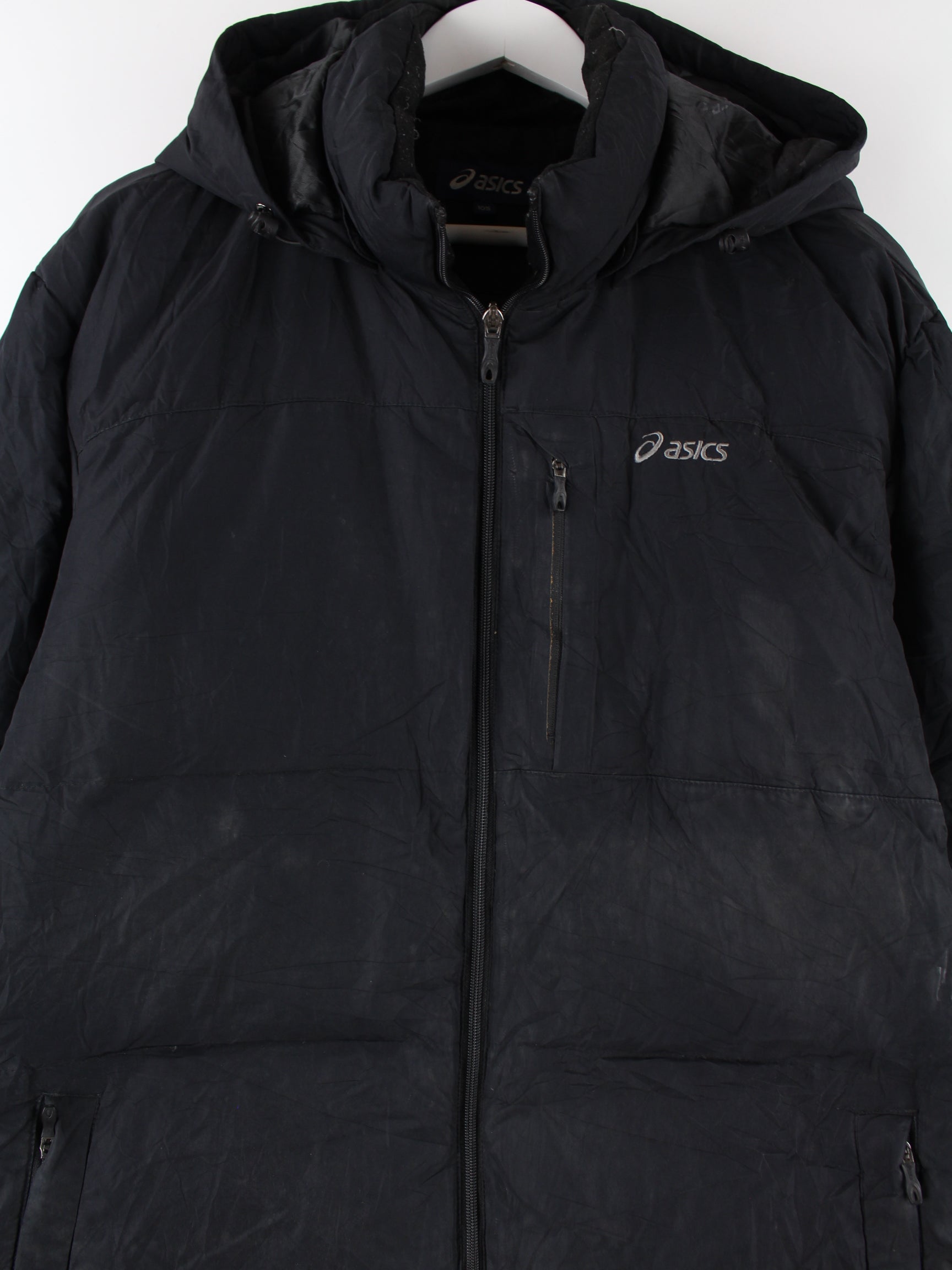 Schwarze Jacke der Brand Asics in Größe XL. Sie ist aus Synthetik hergestellt. Den Zustand würden wir als 'In Ordnung' bezeichnen (vergl. Bilder).