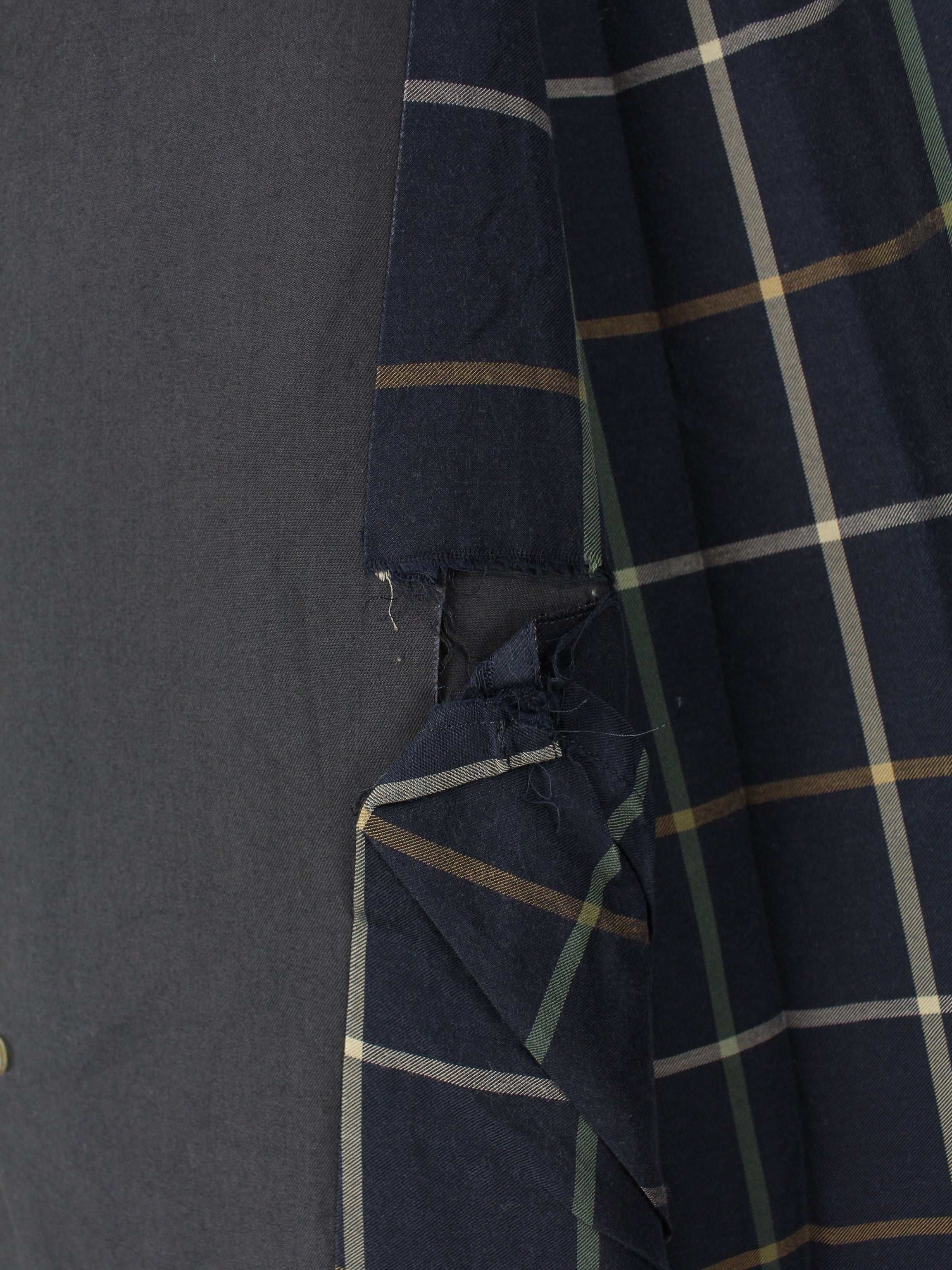 Defects: A button is broken and the inner lining is damaged in one place (see pictures)