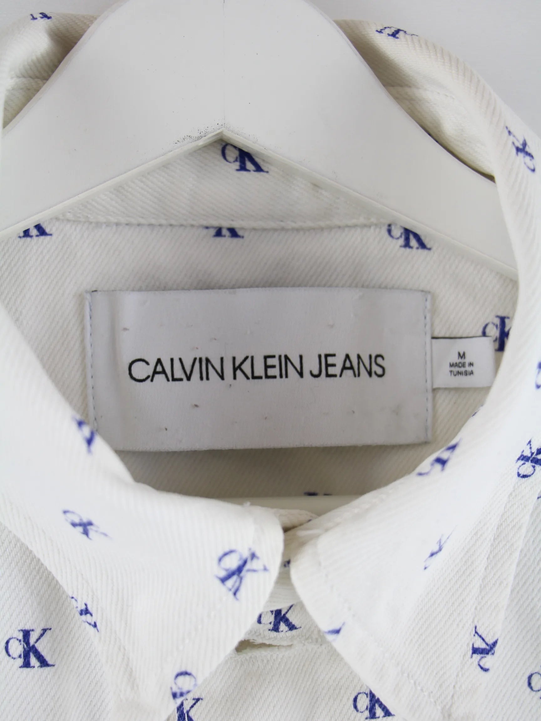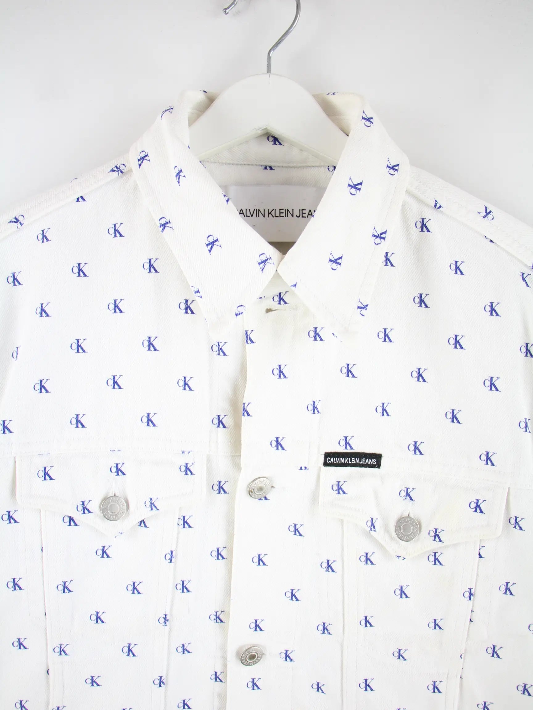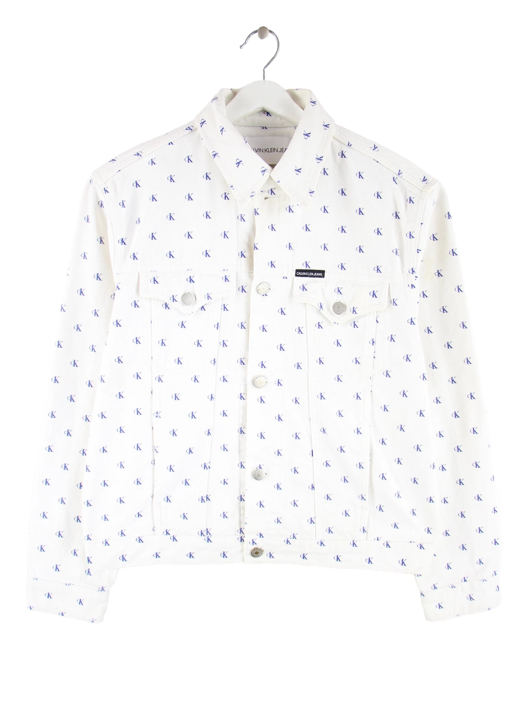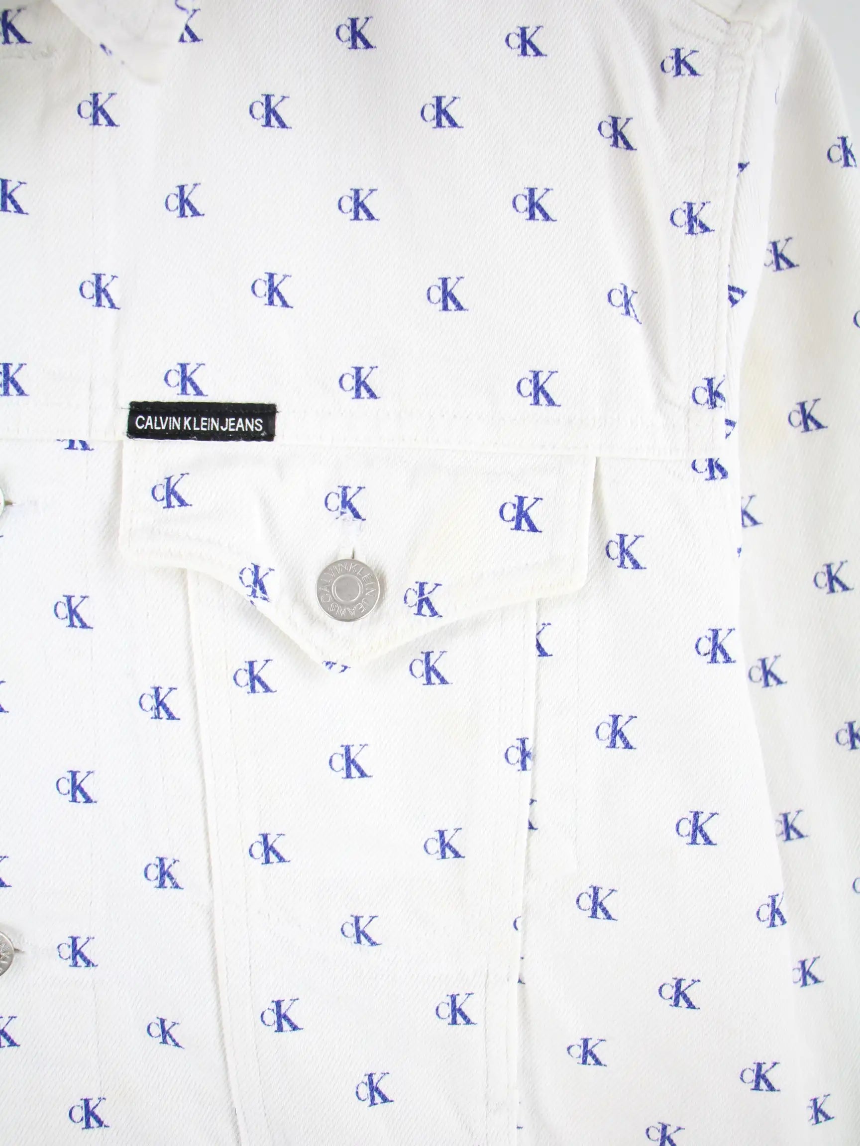 Calvin Klein Damen Monogramm All Over Jeans Jacke Weiß M