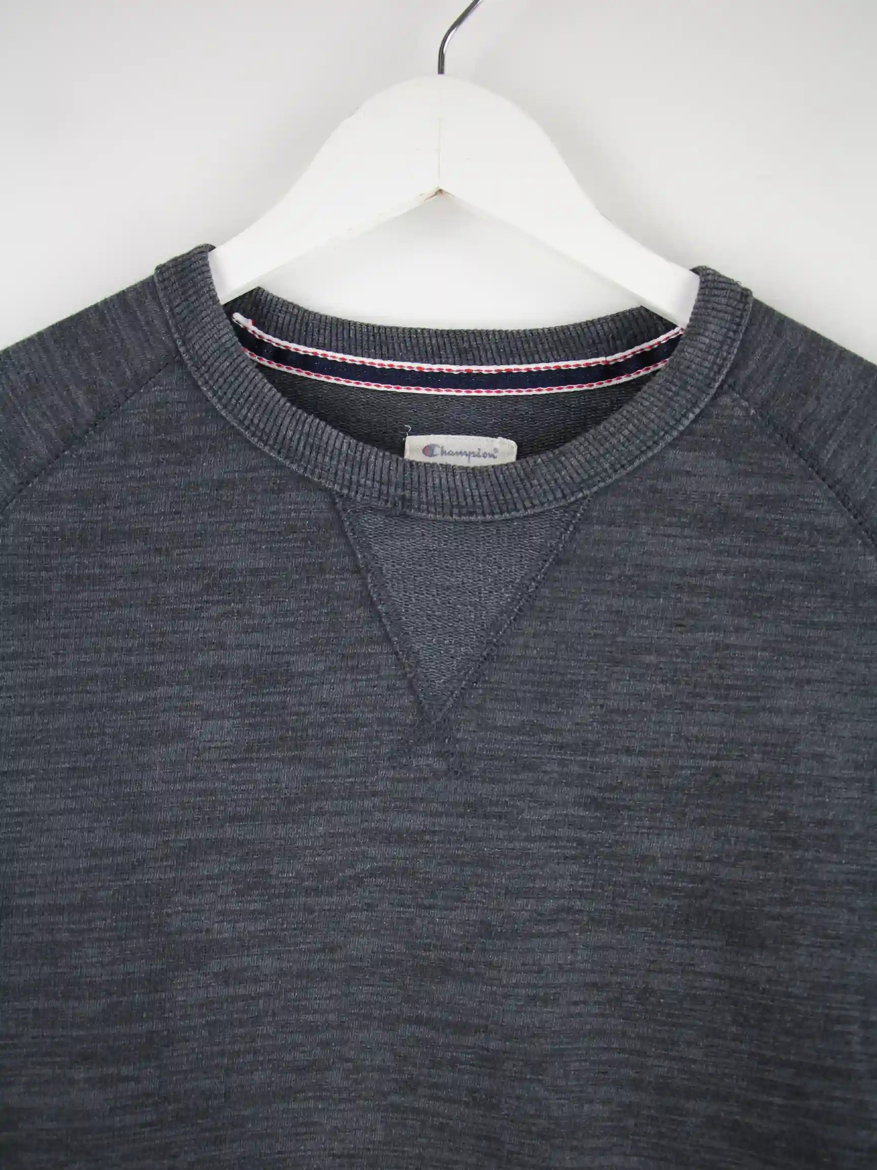Sweater vom Label Champion in Größe M. Er ist aus einer Baumwollmischung produziert und in Grau im Bestand.