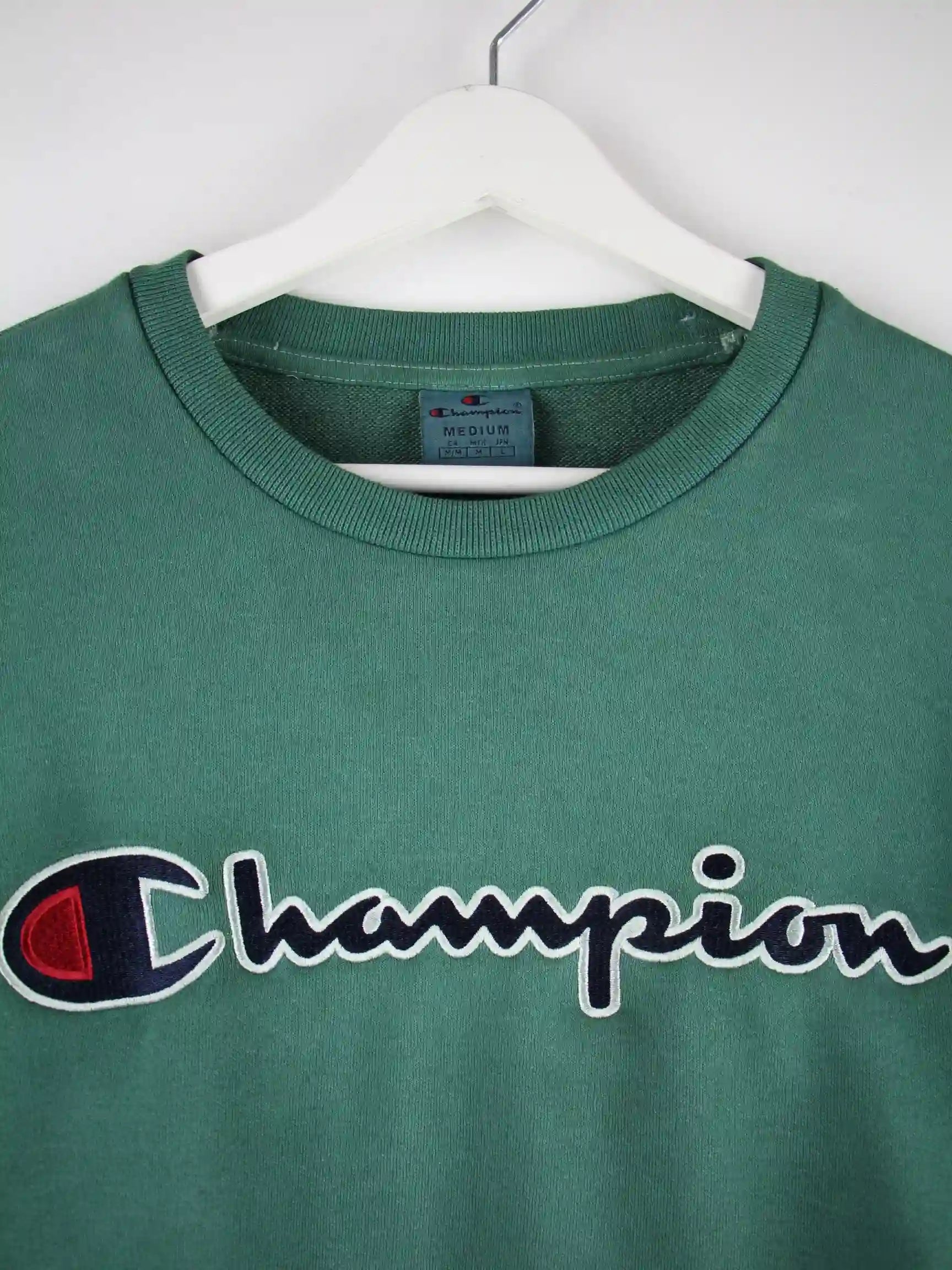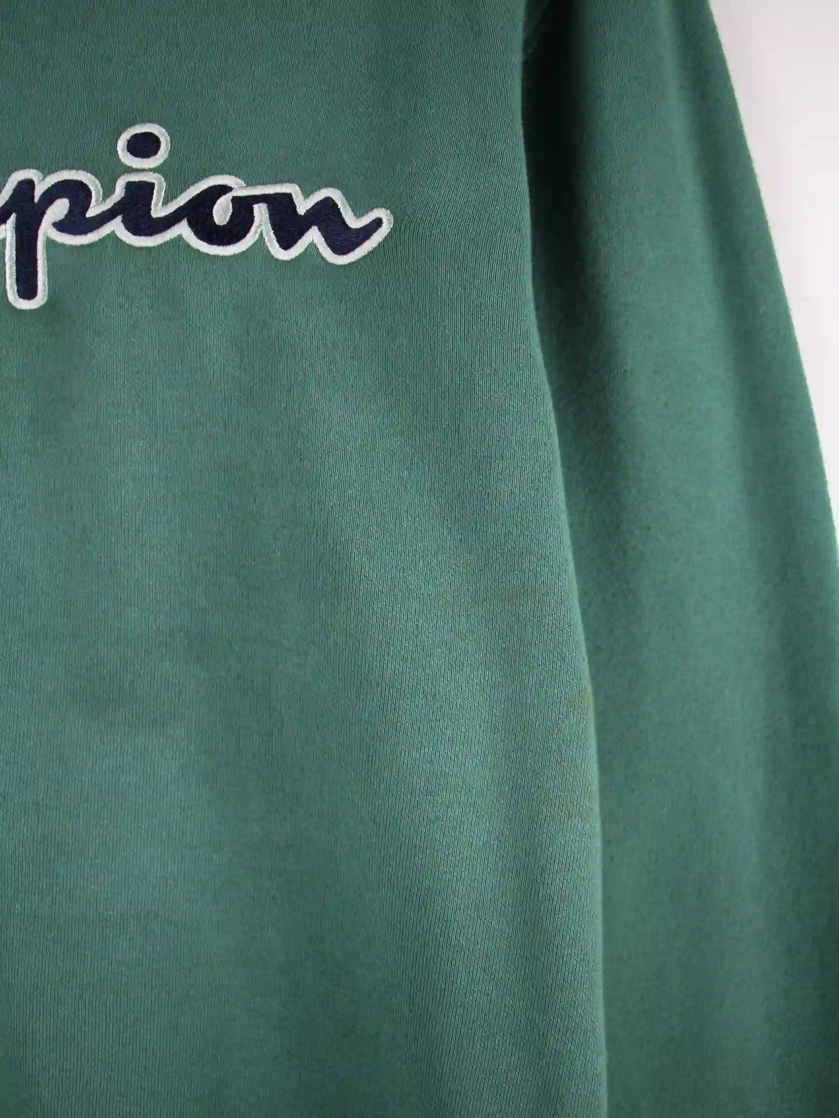 Grüner Sweater der Brand Champion in Größe M. Er ist aus einer Baumwollmischung angefertigt. Den Zustand würden wir als 'In Ordnung' bezeichnen (vergl. Bilder).