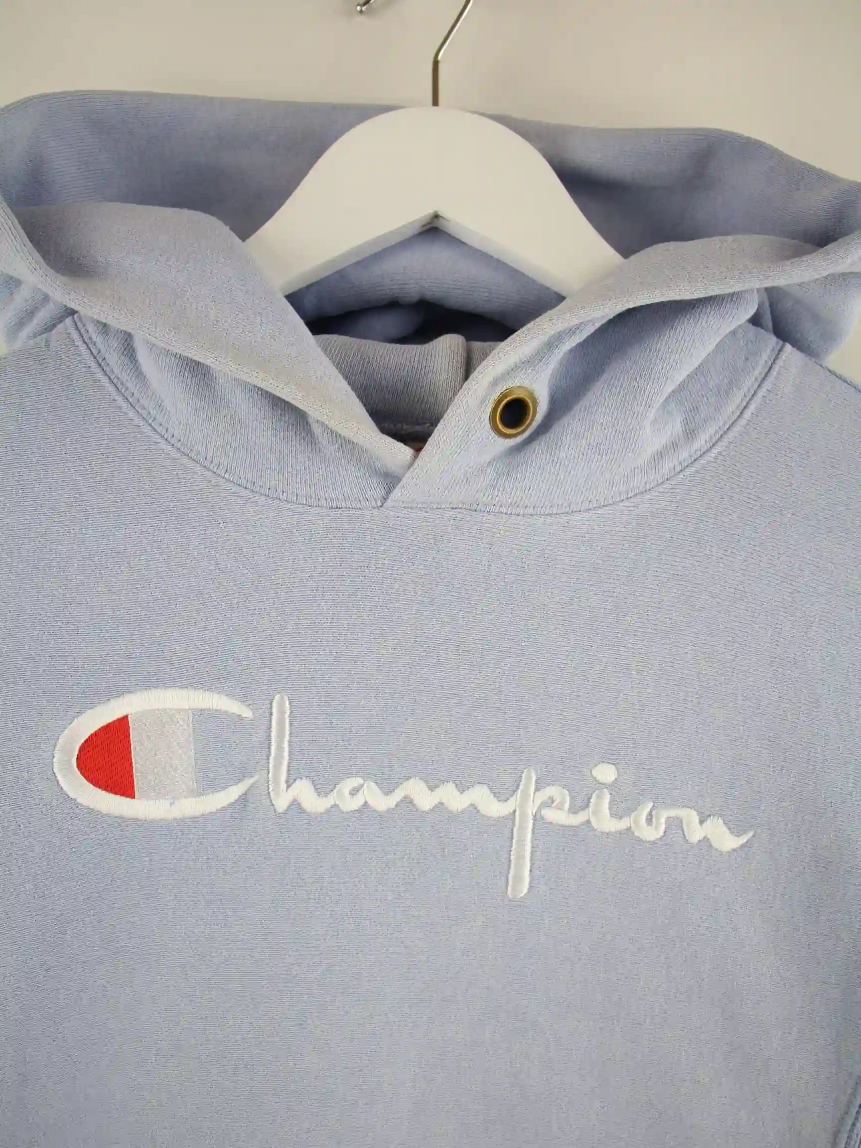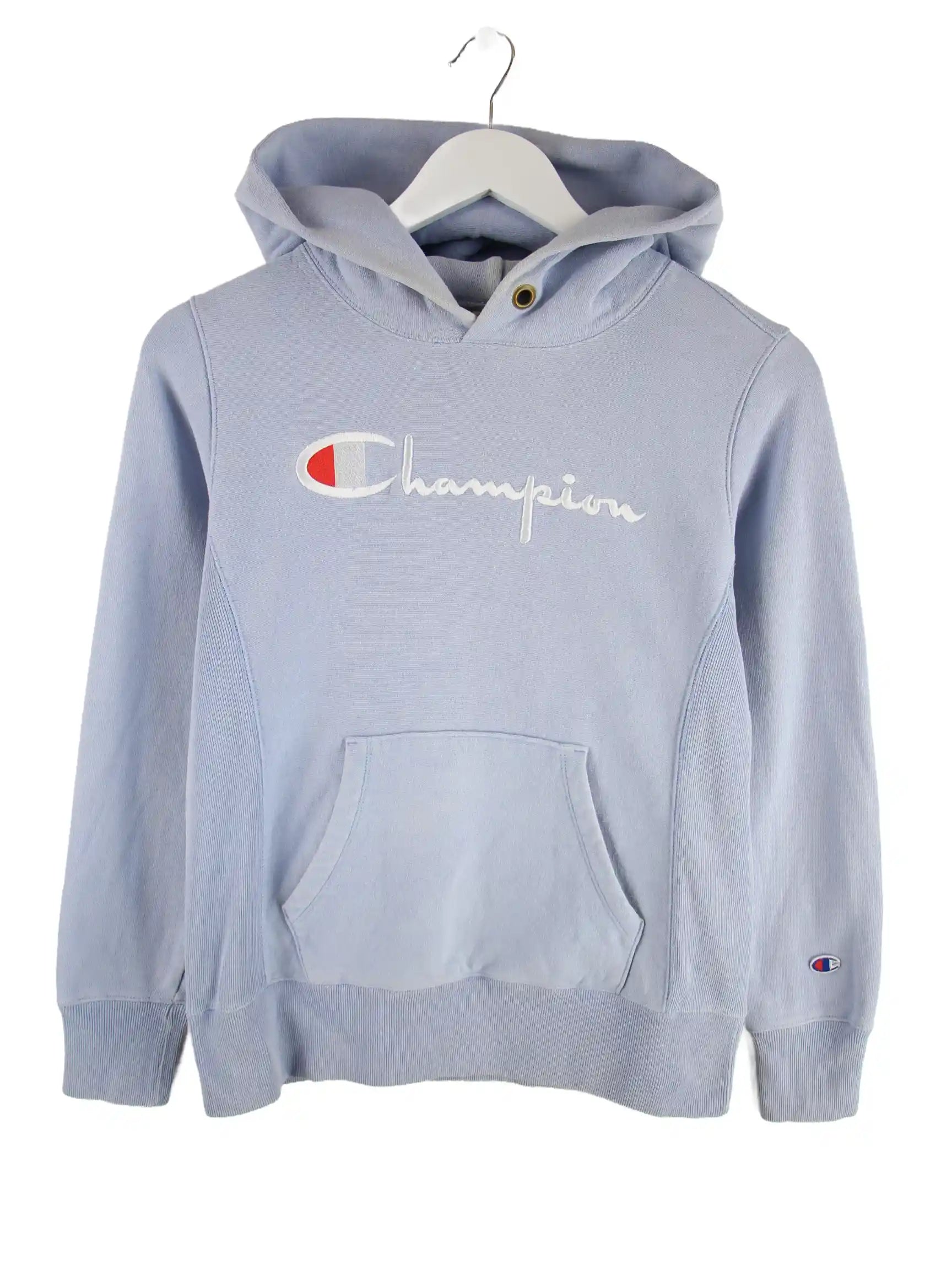 Hoodie der Brand Champion in Größe S. Er ist aus einer Baumwollmischung hergestellt und in Blau bei uns zu bekommen.
