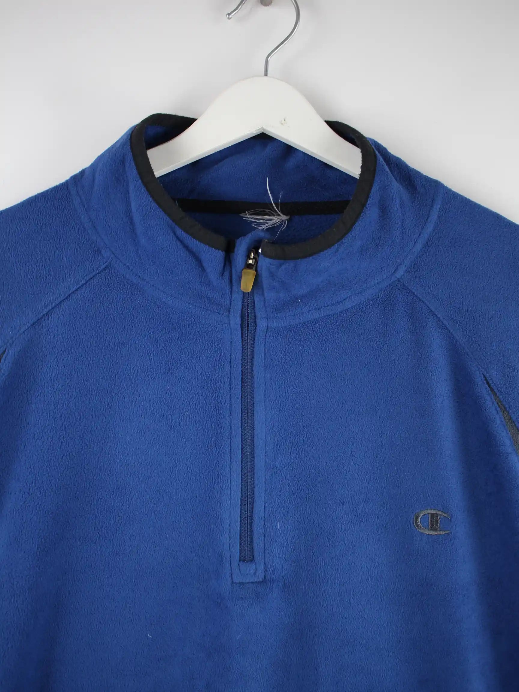 Blaue Leichte Jacke mit kurzem Reißverschluß des Labels Champion in Größe 3XL. Sie ist aus angenehmem Fleece und in gutem Zustand bei uns zu bekommen.