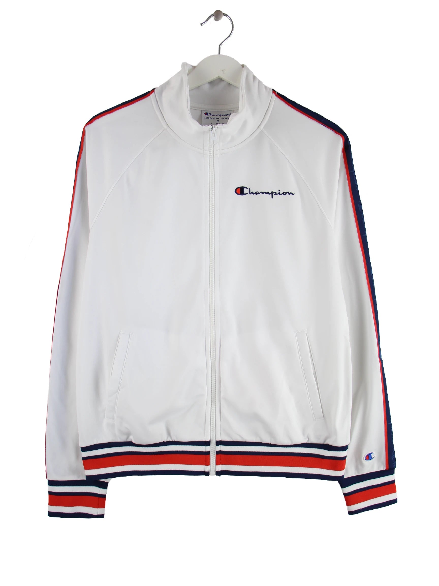 Trainingsjacke der Brand Champion in Größe M. Sie ist aus Synthetik hergestellt und in Weiß zu bekommen.