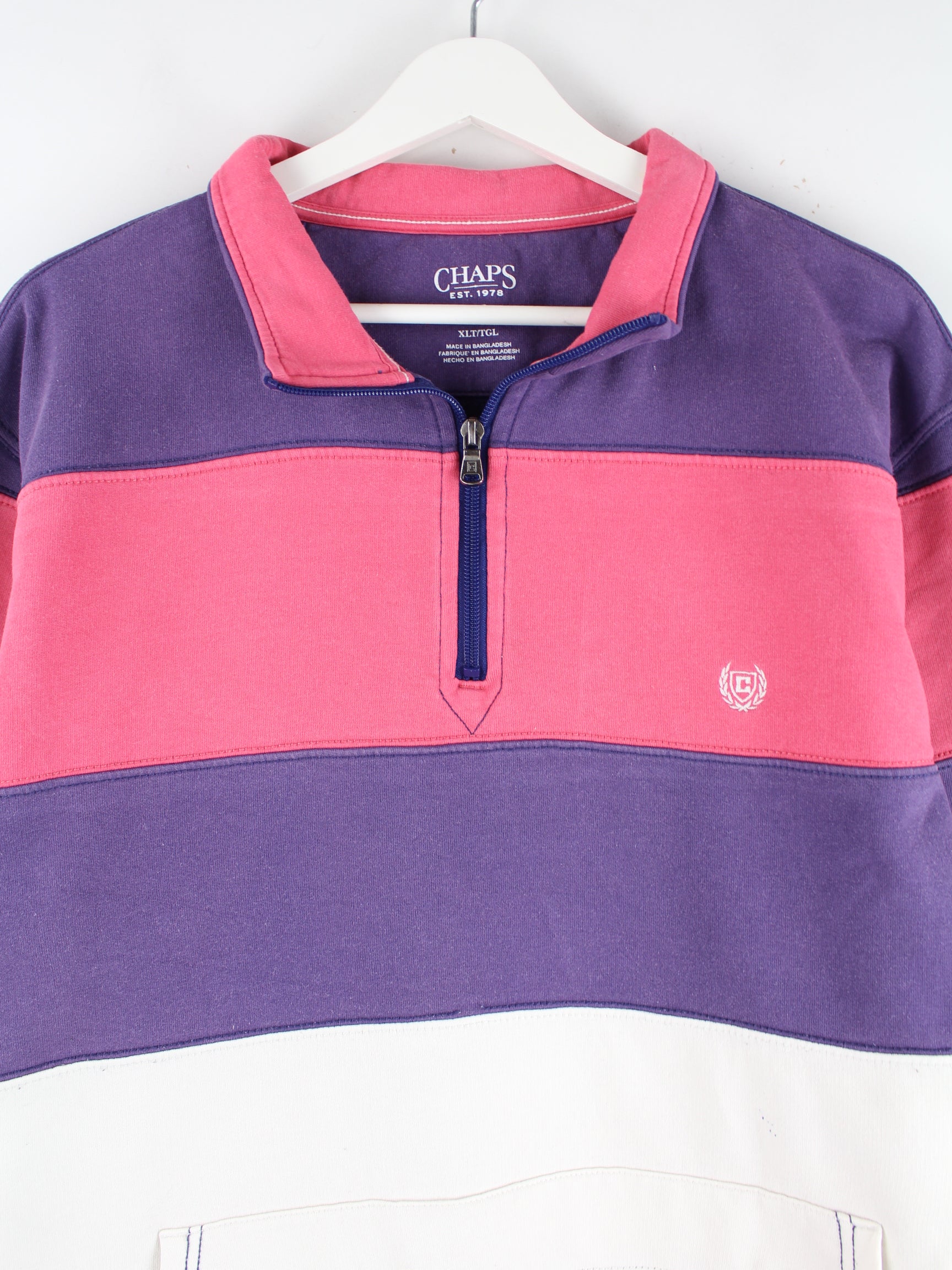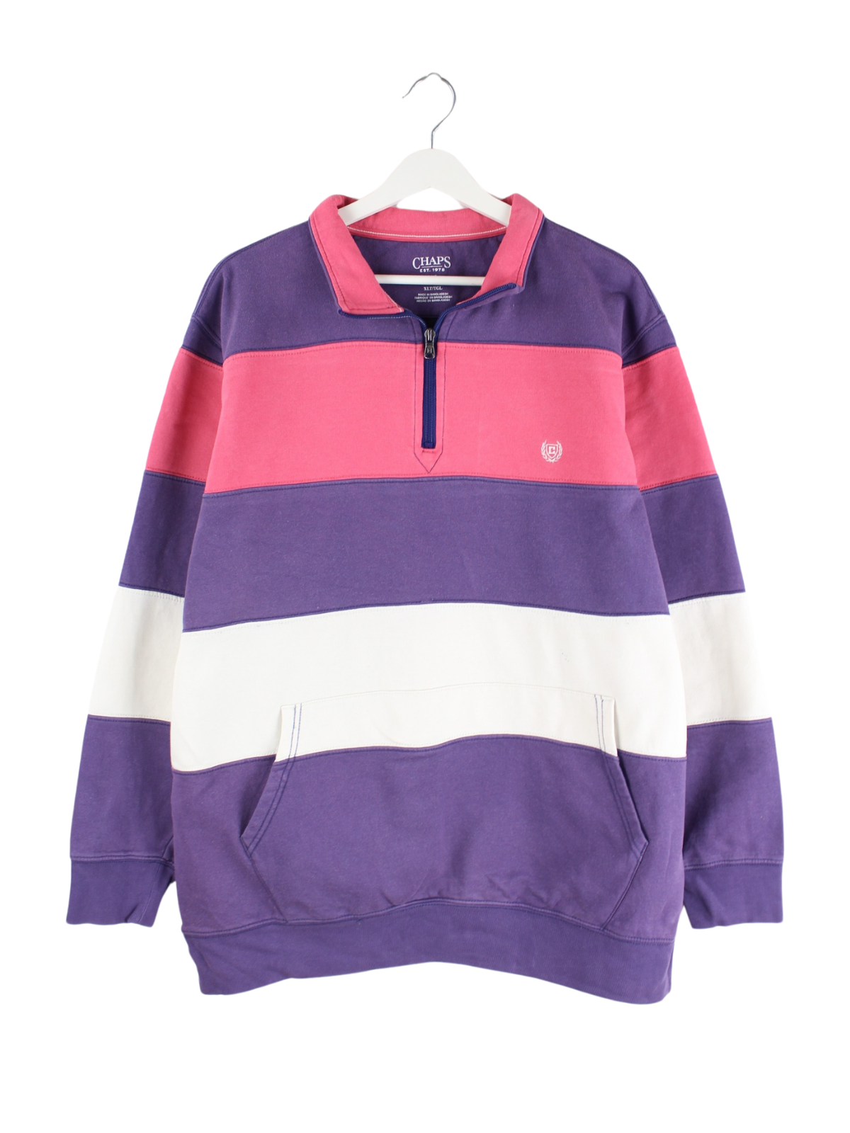 Lilafarbener Sweater mit half Zip des Labels Chaps by Ralph Lauren in Größe XL. Er ist aus einer Baumwollmischung gefertigt und in gutem Zustand im Angebot.