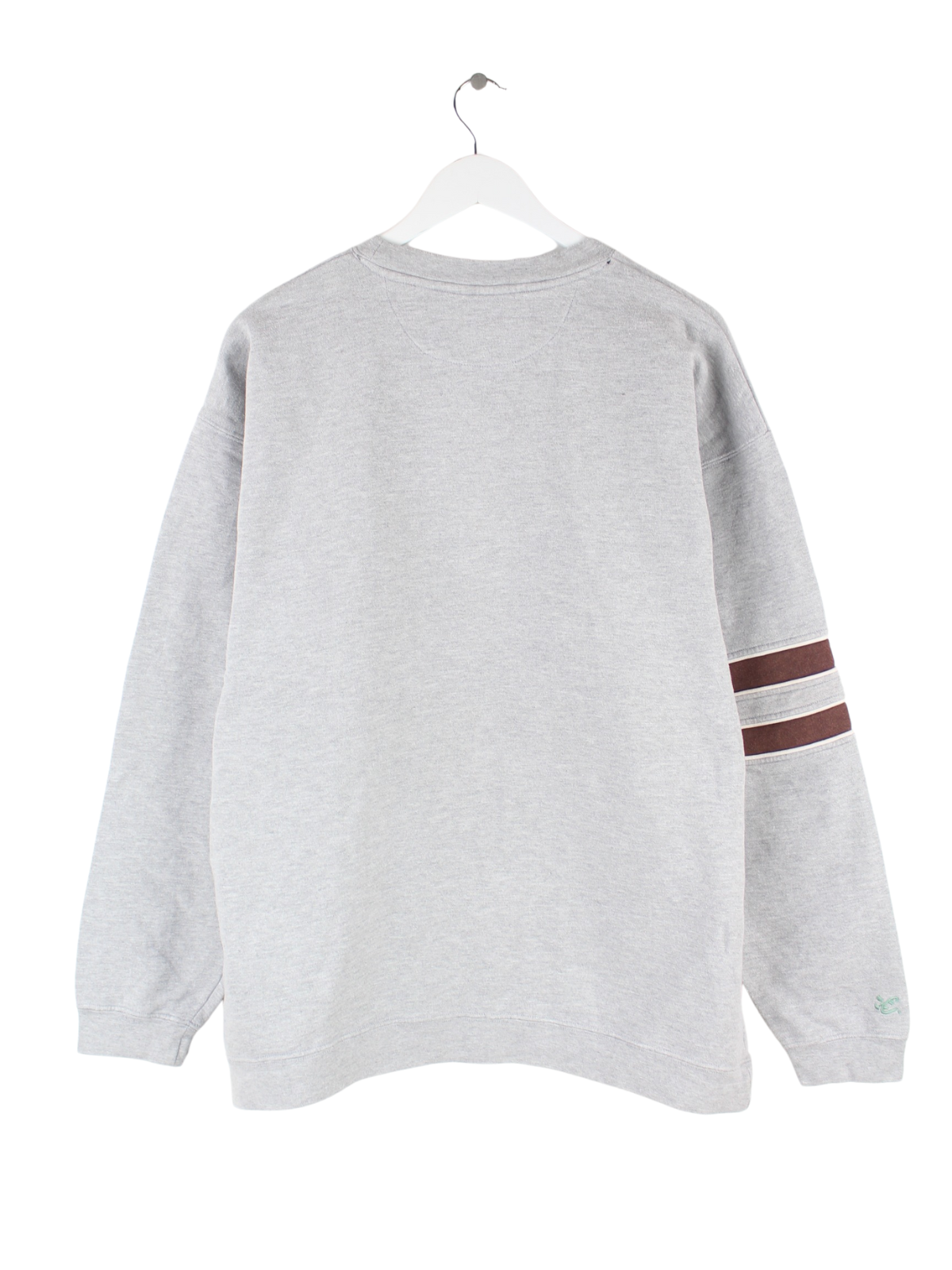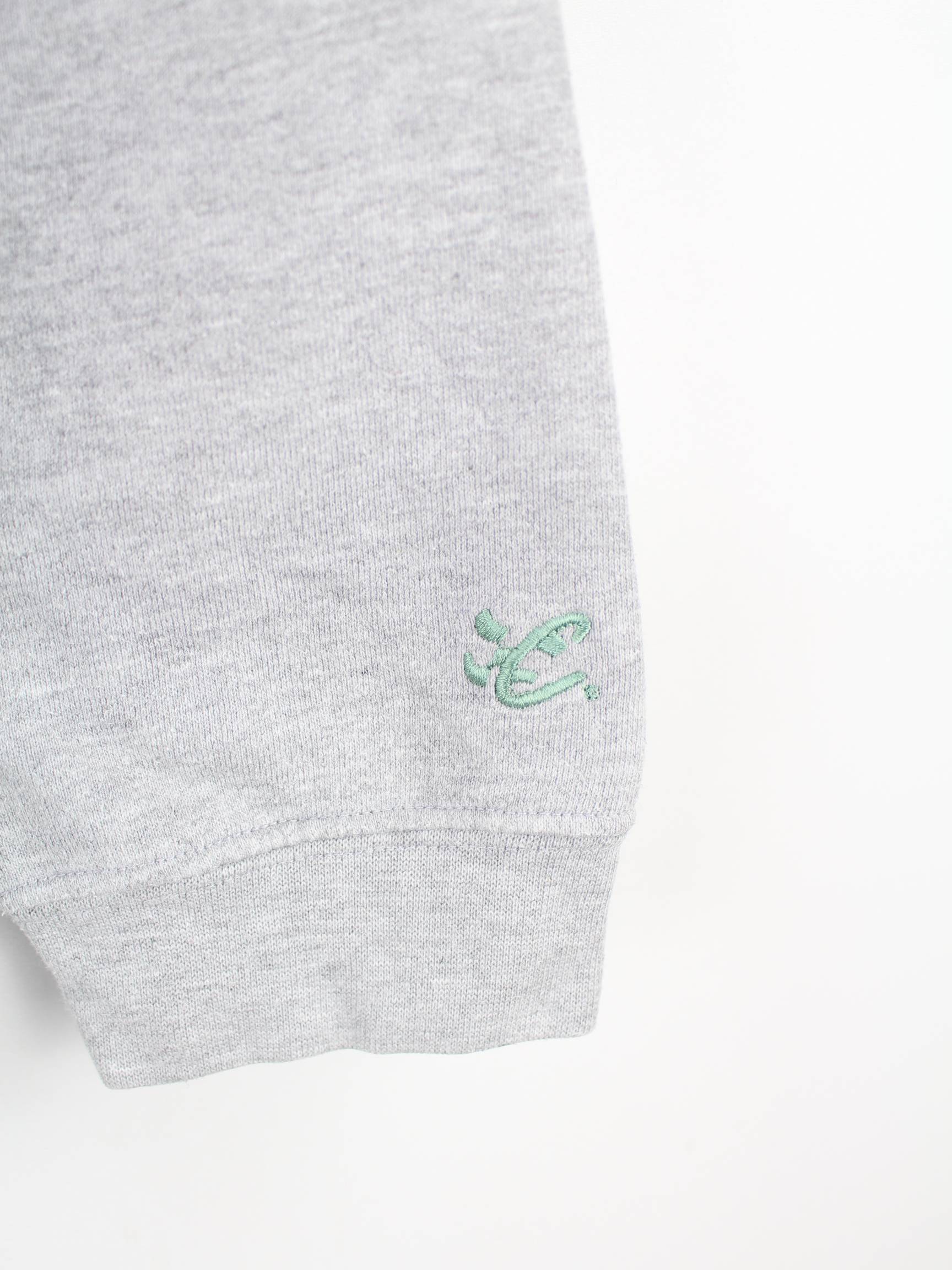 Sweater vom Label Chase mit gestickten Motiven in Größe L aus den 90'ern. Er ist aus einer Baumwollmischung gefertigt und in Grau bei uns vorrätig.