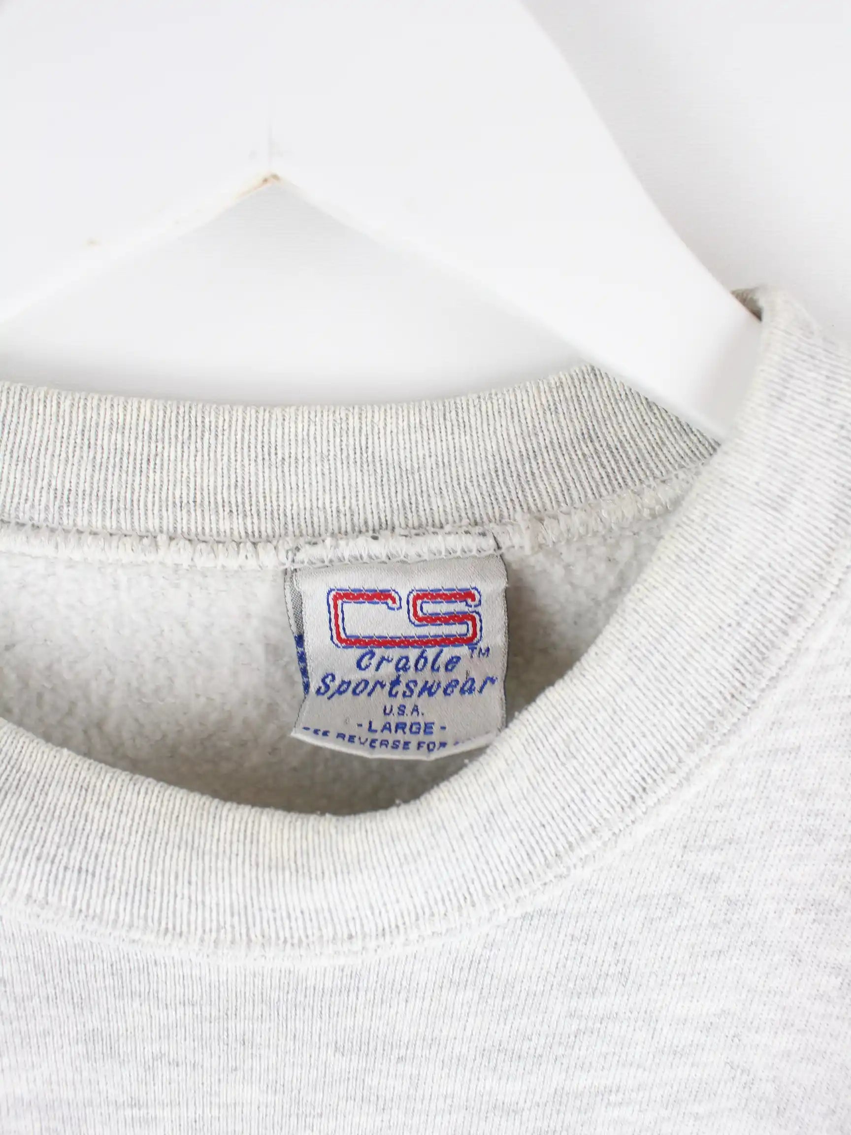 Sweater von Crable Sportswear in Größe L aus den 90'ern. Er ist aus einer Baumwollmischung gefertigt und in Grau auf Lager.