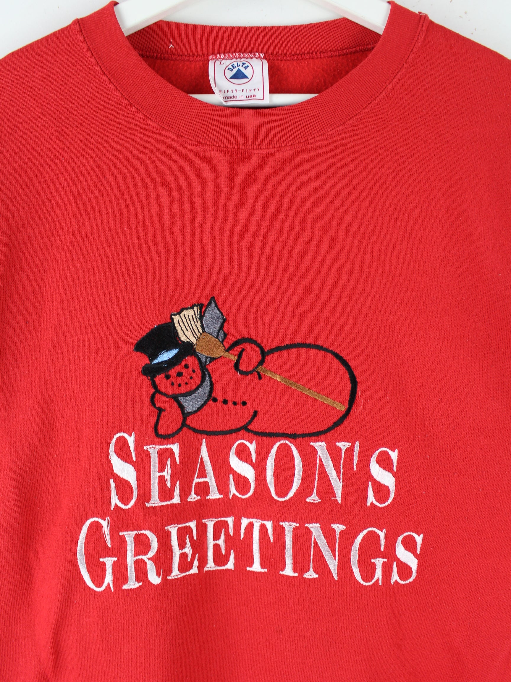 Delta 90s Vintage Embroidered Christmas Sweater Rot L