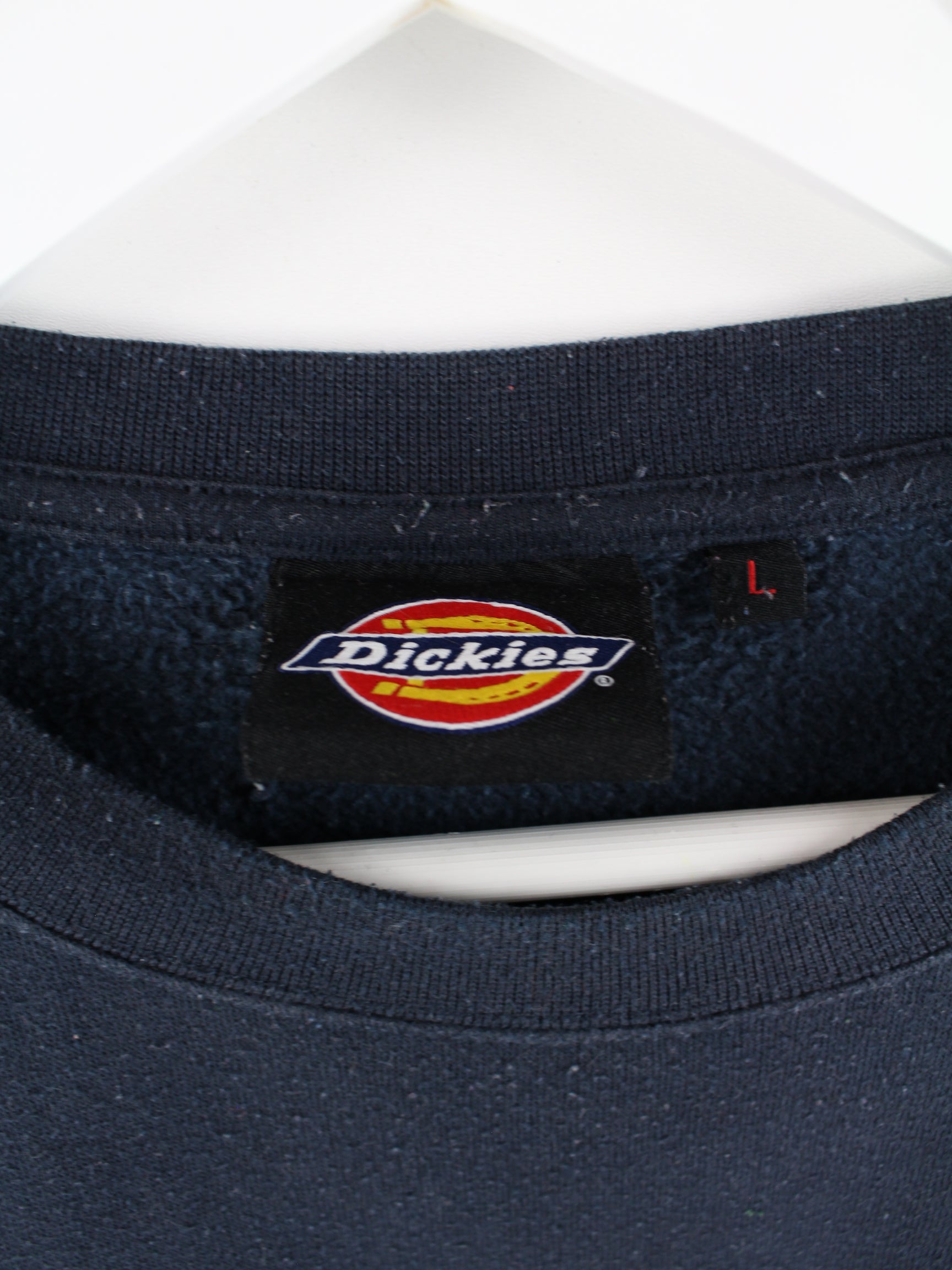 Stylish blue sweater with an embroidered logo from Dickies in size L. It is made from a cotton blend and is available in very good condition.