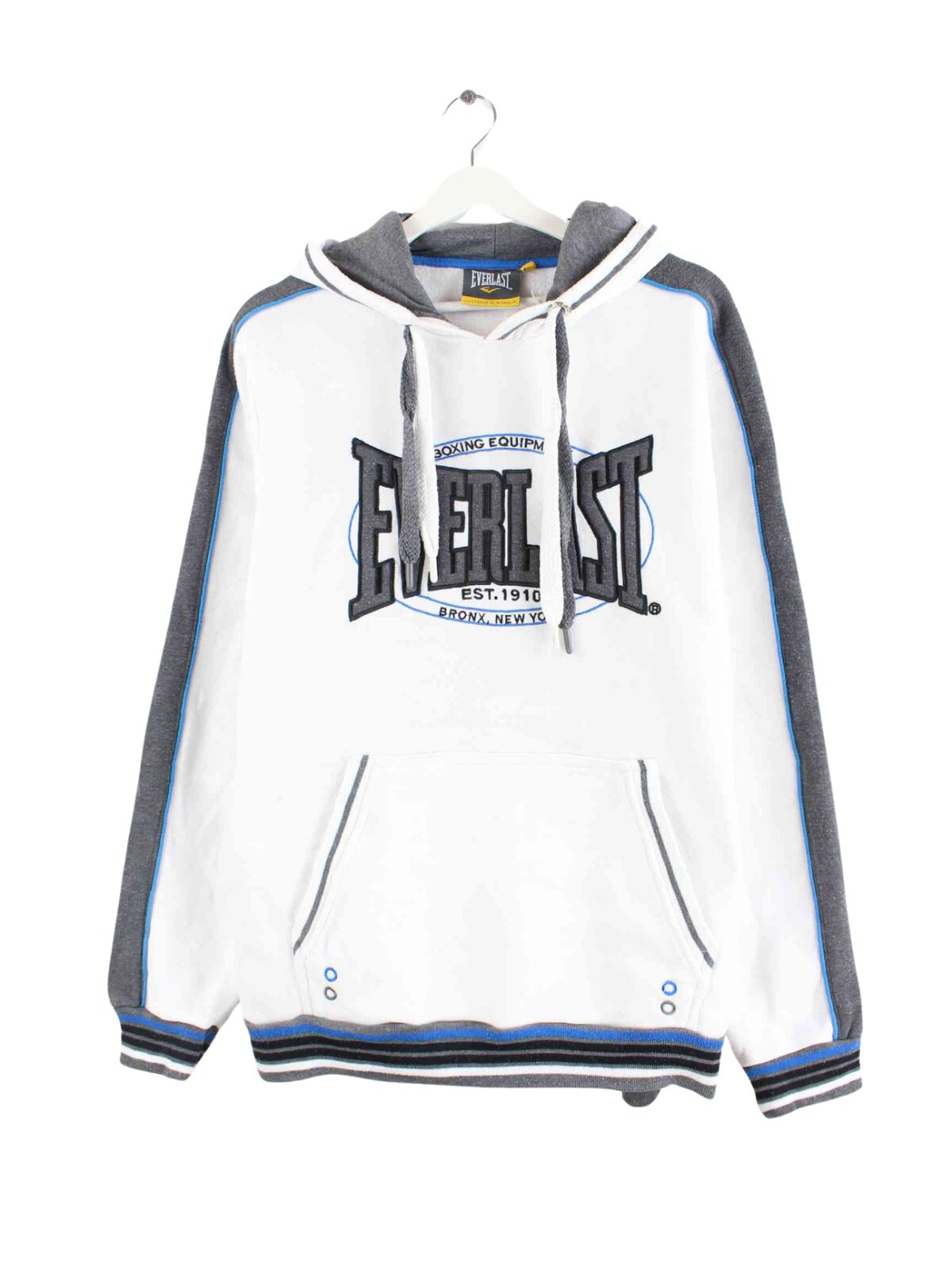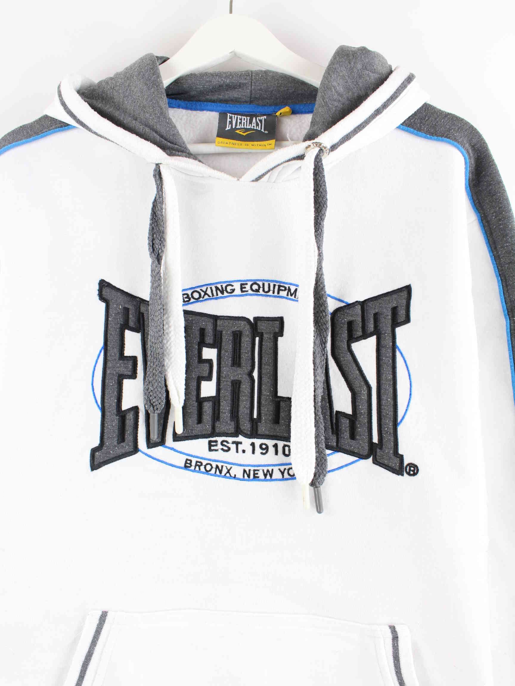 Hoodie from Everlast with embroidered patterns in size L. It is made from a cotton blend and is available from us in white.