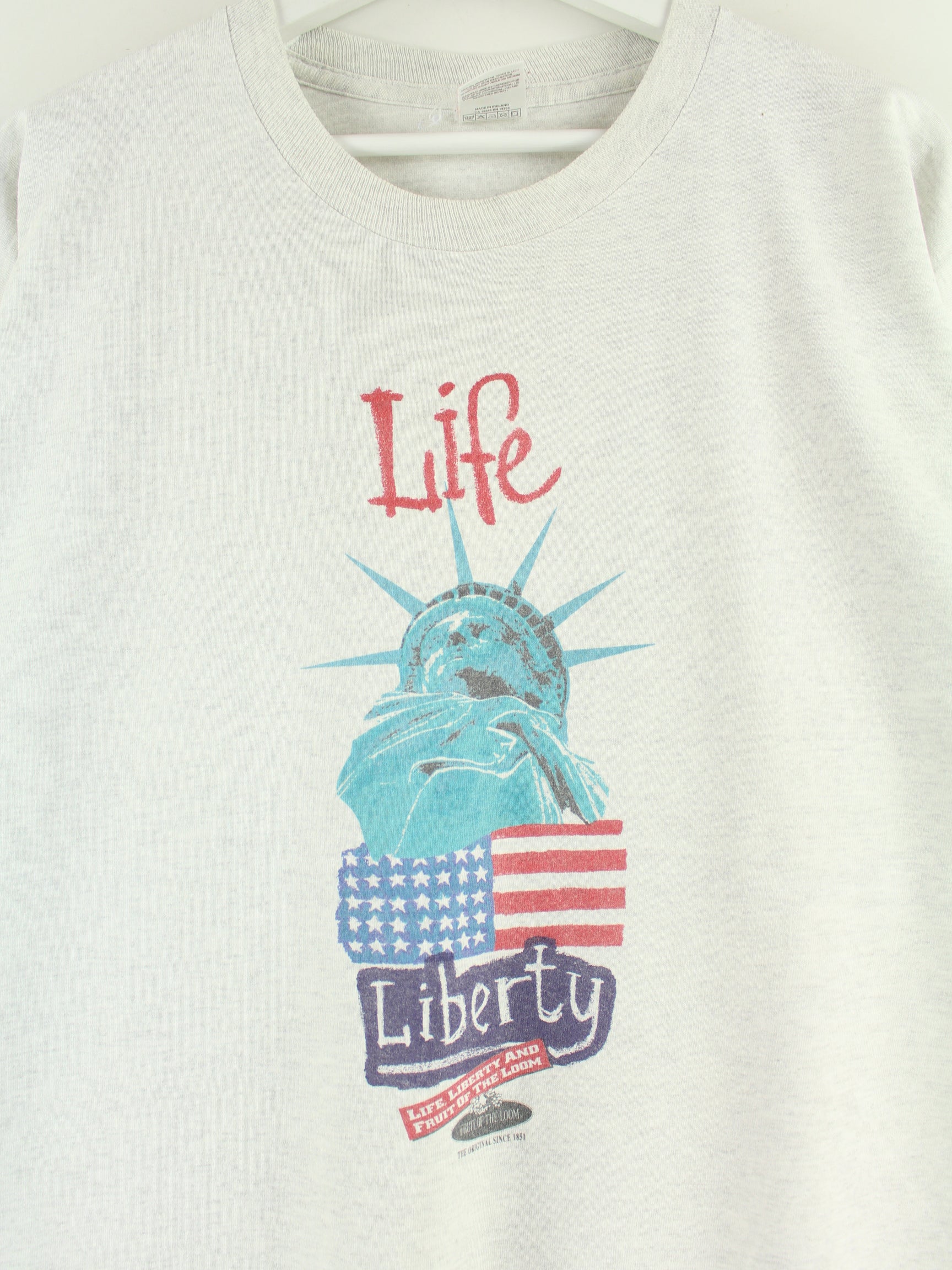 Fruit of the Loom 80s Vintage Liberty Print Single Stitched T-Shirt Grey XL