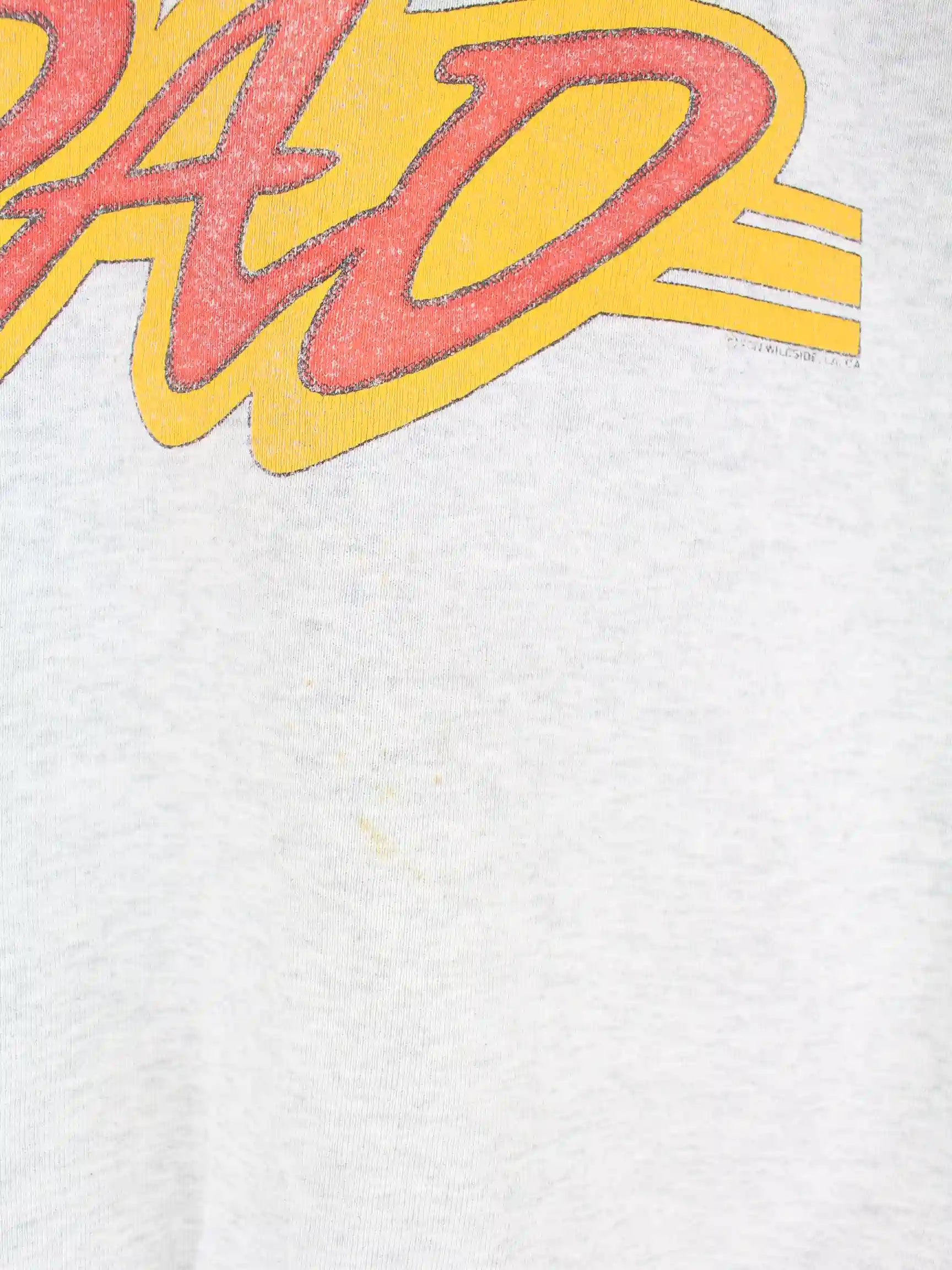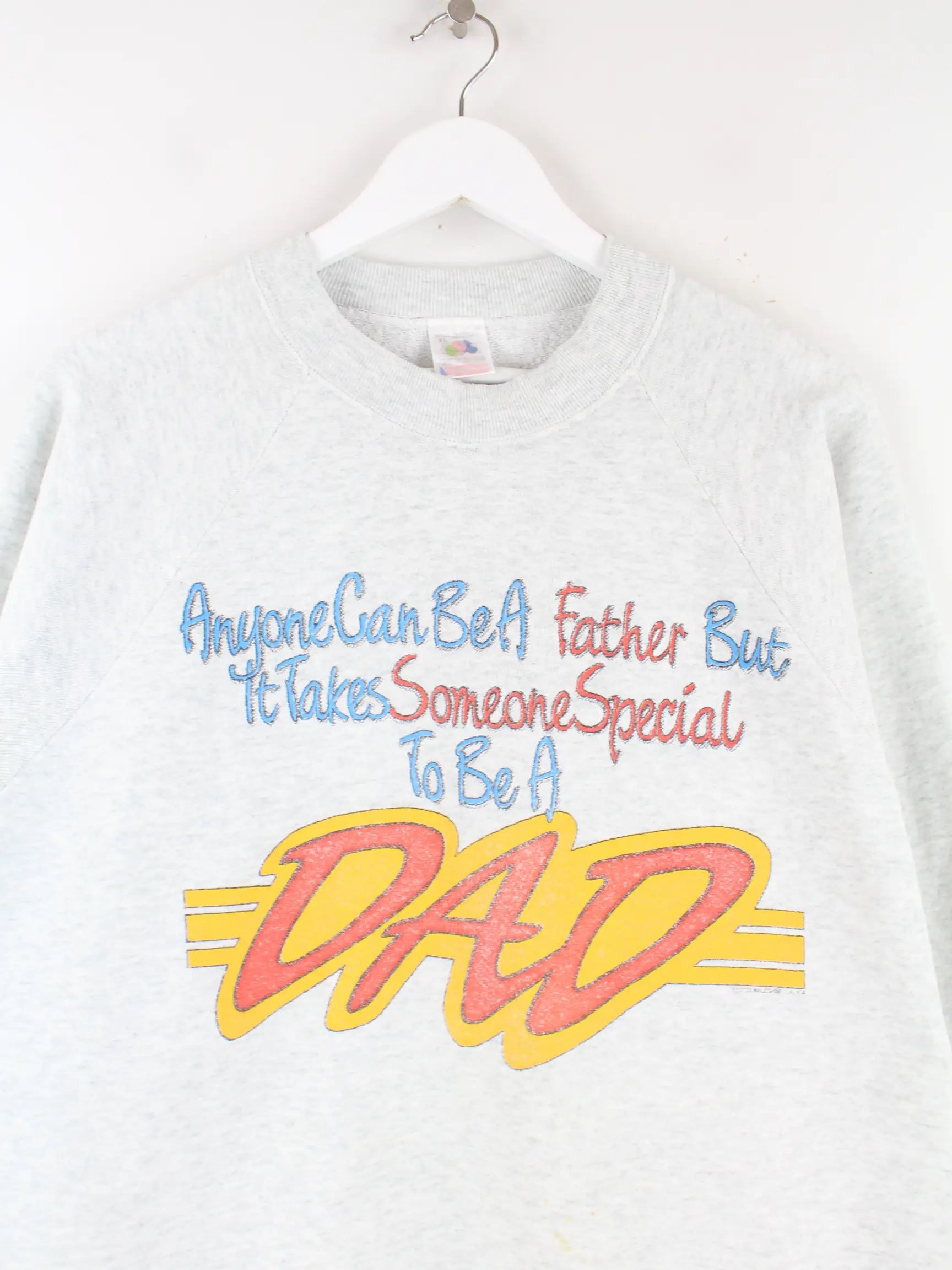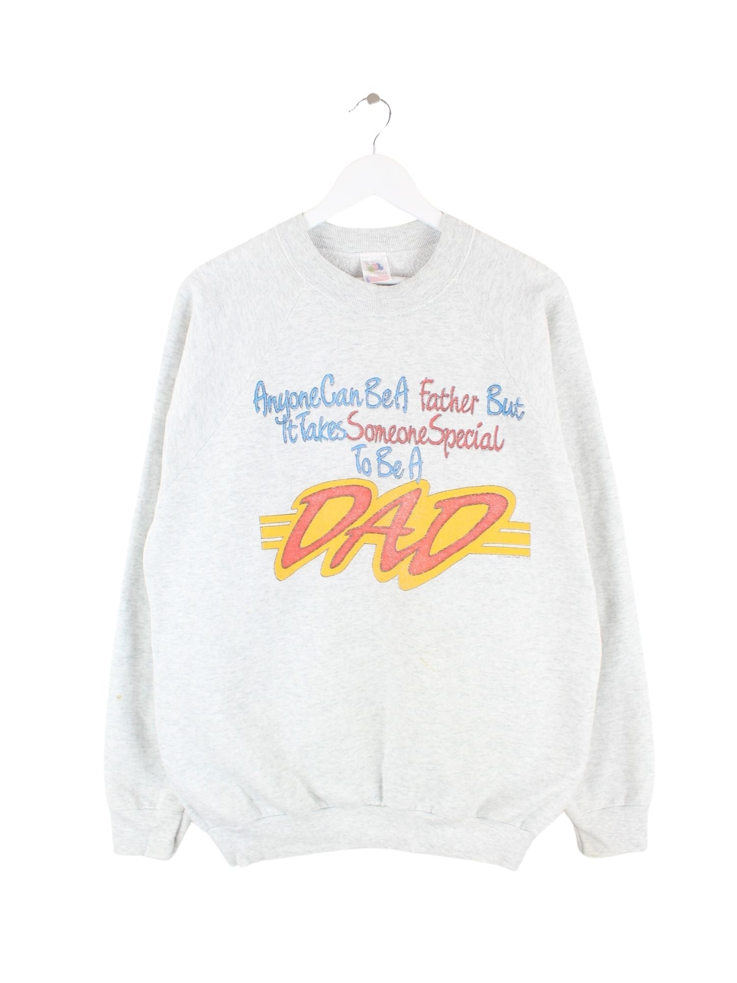 Grauer Sweater vom Brand Fruit of the Loom aus den 90'ern in Größe XL. Er ist aus einer Baumwollmischung hergestellt. Den Zustand würden wir als 'In Ordnung' bezeichnen (vergl. Bilder).Mit tollem Vintage Print.