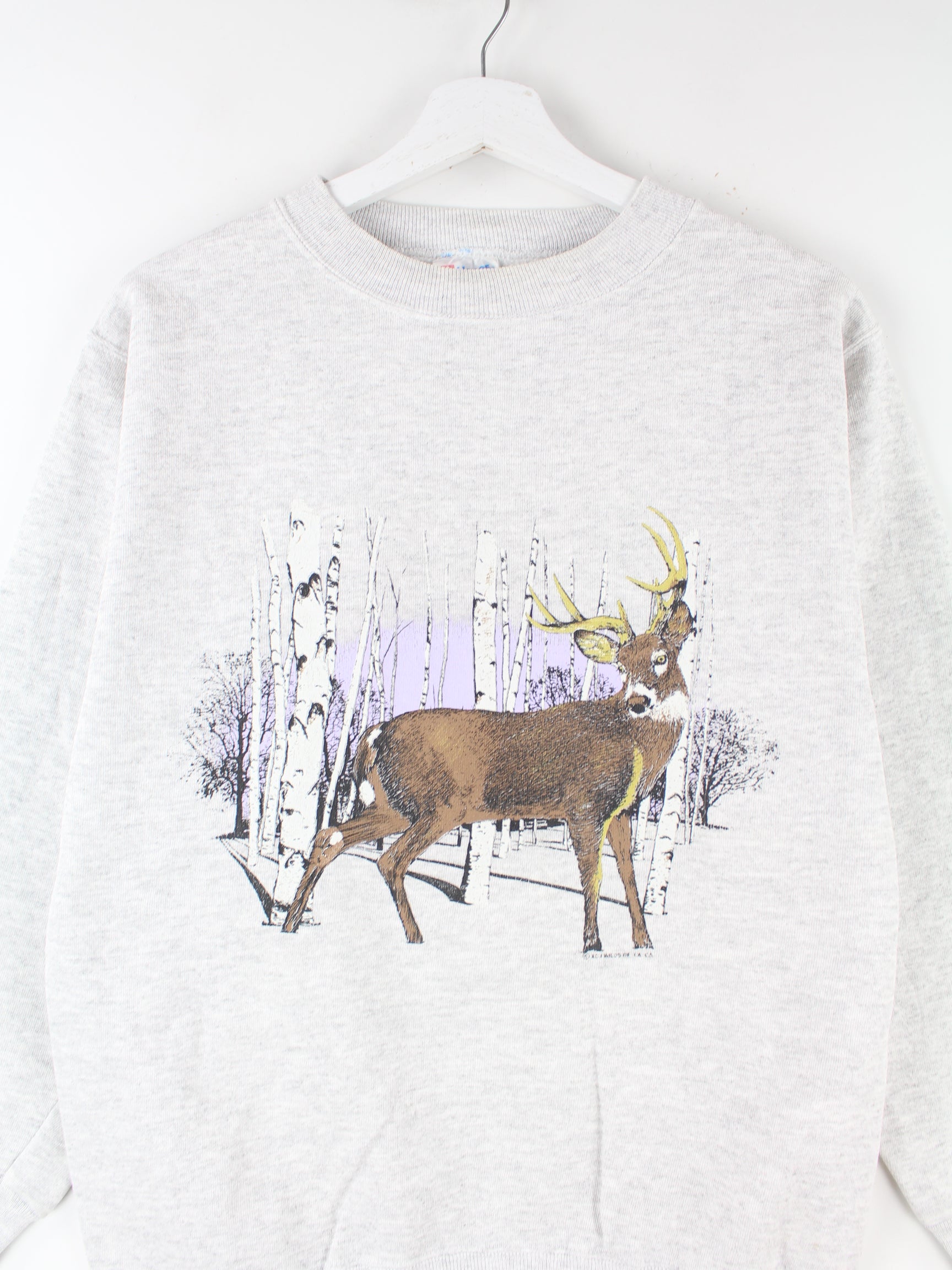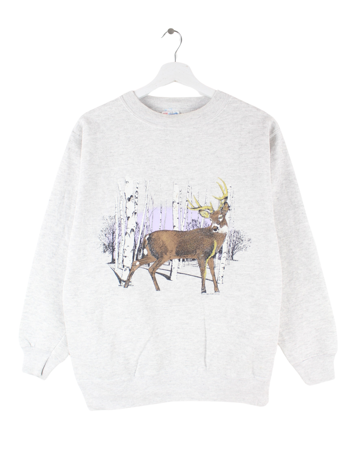Hanes 90s Vintage Deer Print Sweater Grau S