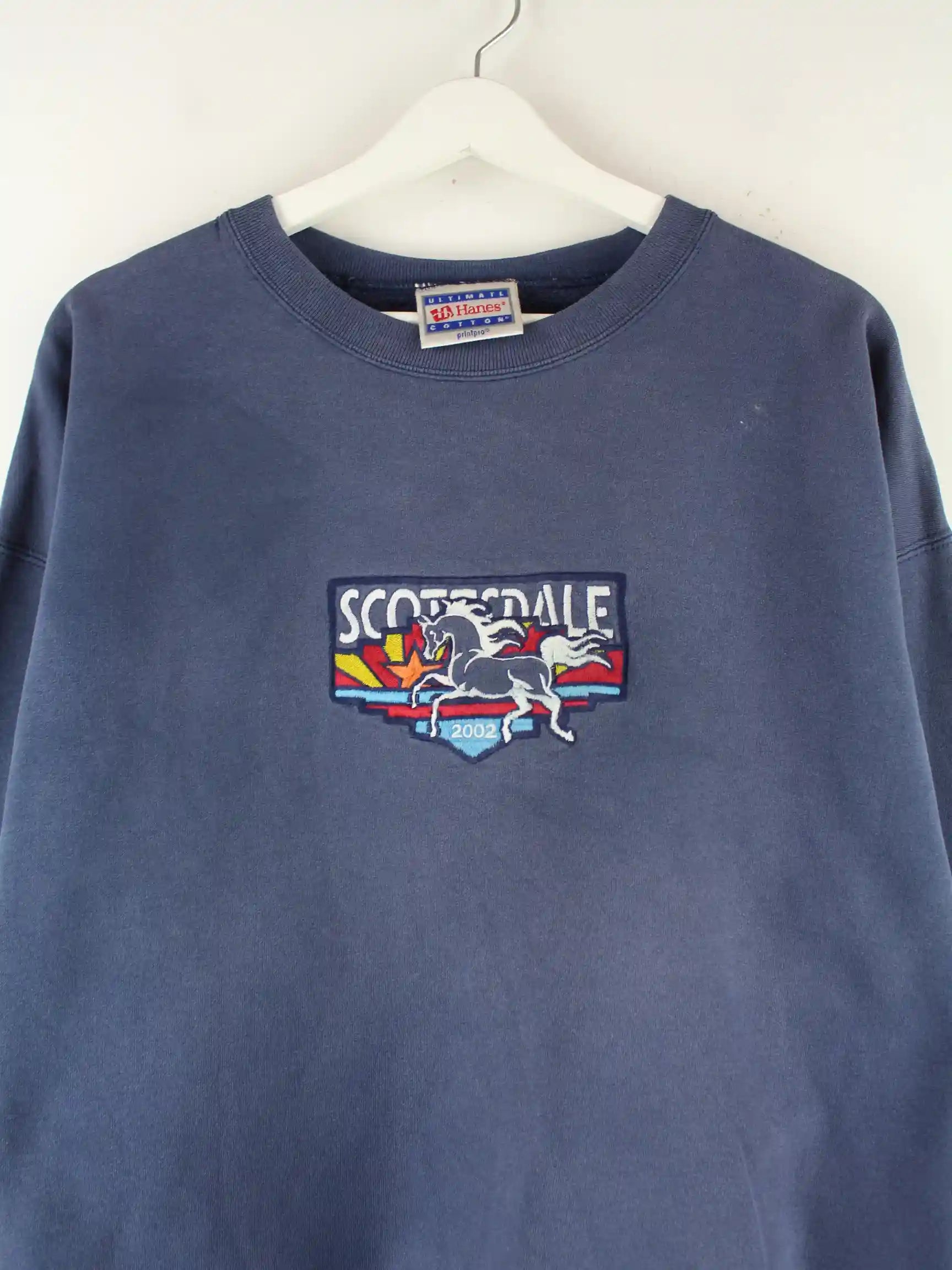 Hanes 90s Vintage Scottsdale Embroidered Heavy Sweater Blau L