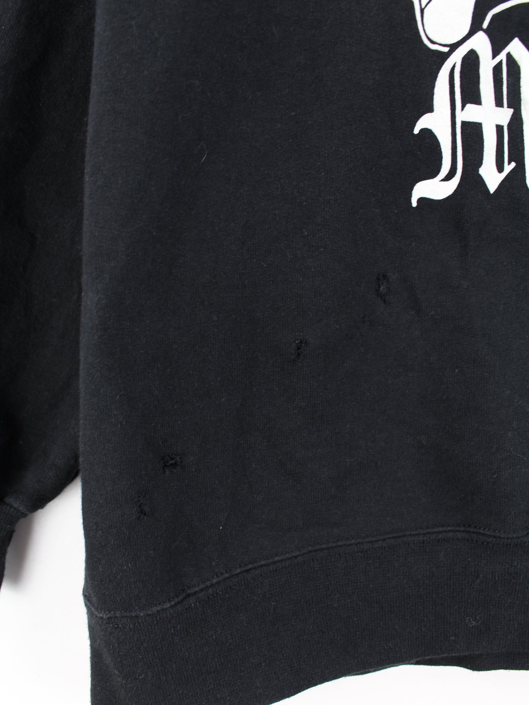 Schwarzer Hoodie mit langem Reißverschluß aus dem Hause Hanes aus den 90'ern in Größe XXL. Er ist aus einer Baumwollmischung hergestellt. Den Zustand würden wir als 'In Ordnung' bezeichnen (vergl. Bilder).Mit chiquem Skull Print.
